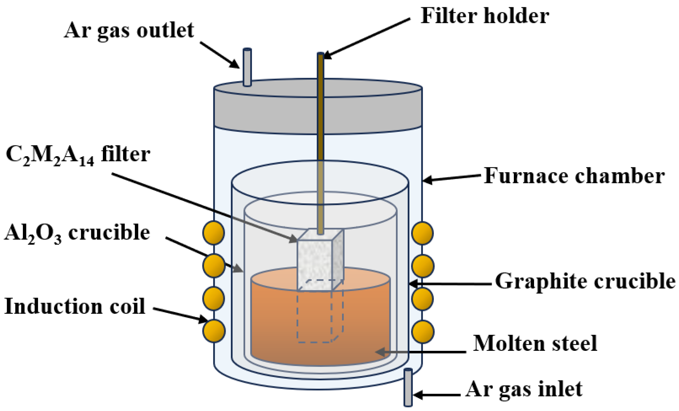 - Yan, W.; Song, J.W.; Dai, Y.J.; Liu, Y.; Chen, Q.L.; Han, Z.; Li, H.F.; Hong, S.S. High-performance Al2O3-MgAl2O4-C ceramic filters for molten steel filtration: A comparative study with Al2O3-C, ZrO2 and SiC ceramic filters. Ceram. Int. 2025, 51, 61958. [Google Scholar] [CrossRef]