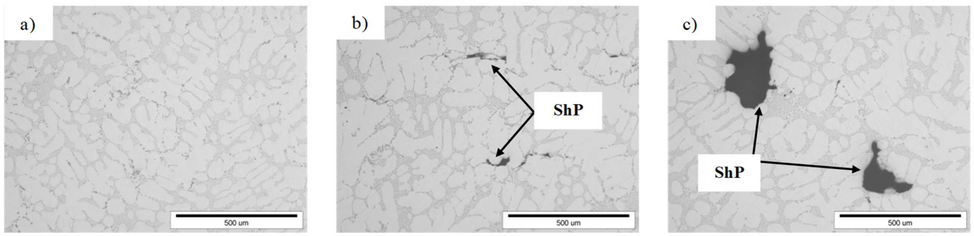 - Samuel, A.M.; Samuel, E.; Songmene, V.; Samuel, F.H. A Review on Porosity Formation in Aluminum-Based Alloys. Materials 2023, 16, 2047. [Google Scholar] [CrossRef]