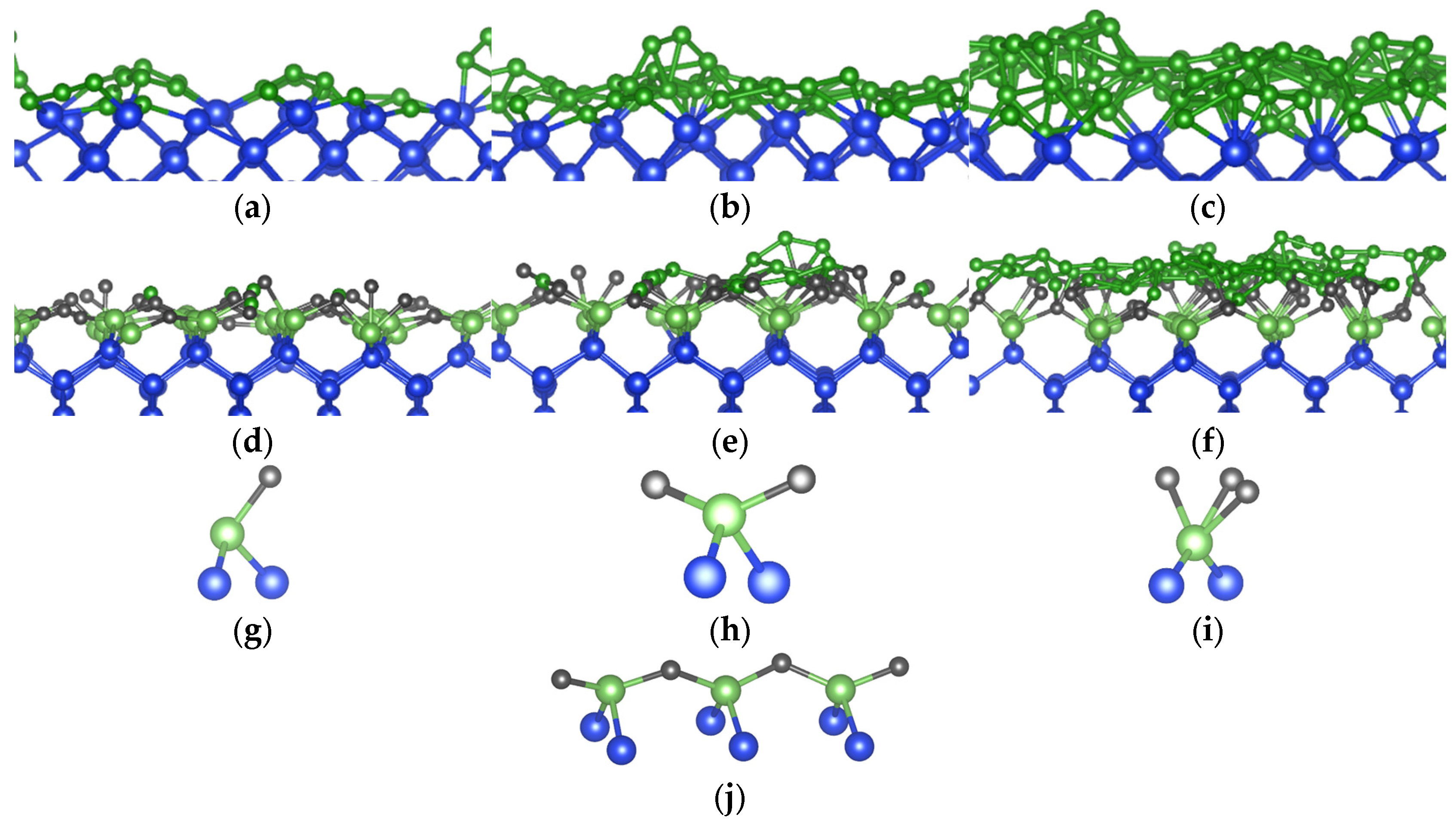 - Fang, C.M.; Mohammadi, V.; Nihtianov, S.; Sluiter, M.H.F. Stability, local structure and electronic properties of borane radicals on the Si(100) 2 × 1:H surface: A first-principles study. Comput. Mater. Sci. 2017, 140, 253–260. [Google Scholar] [CrossRef]