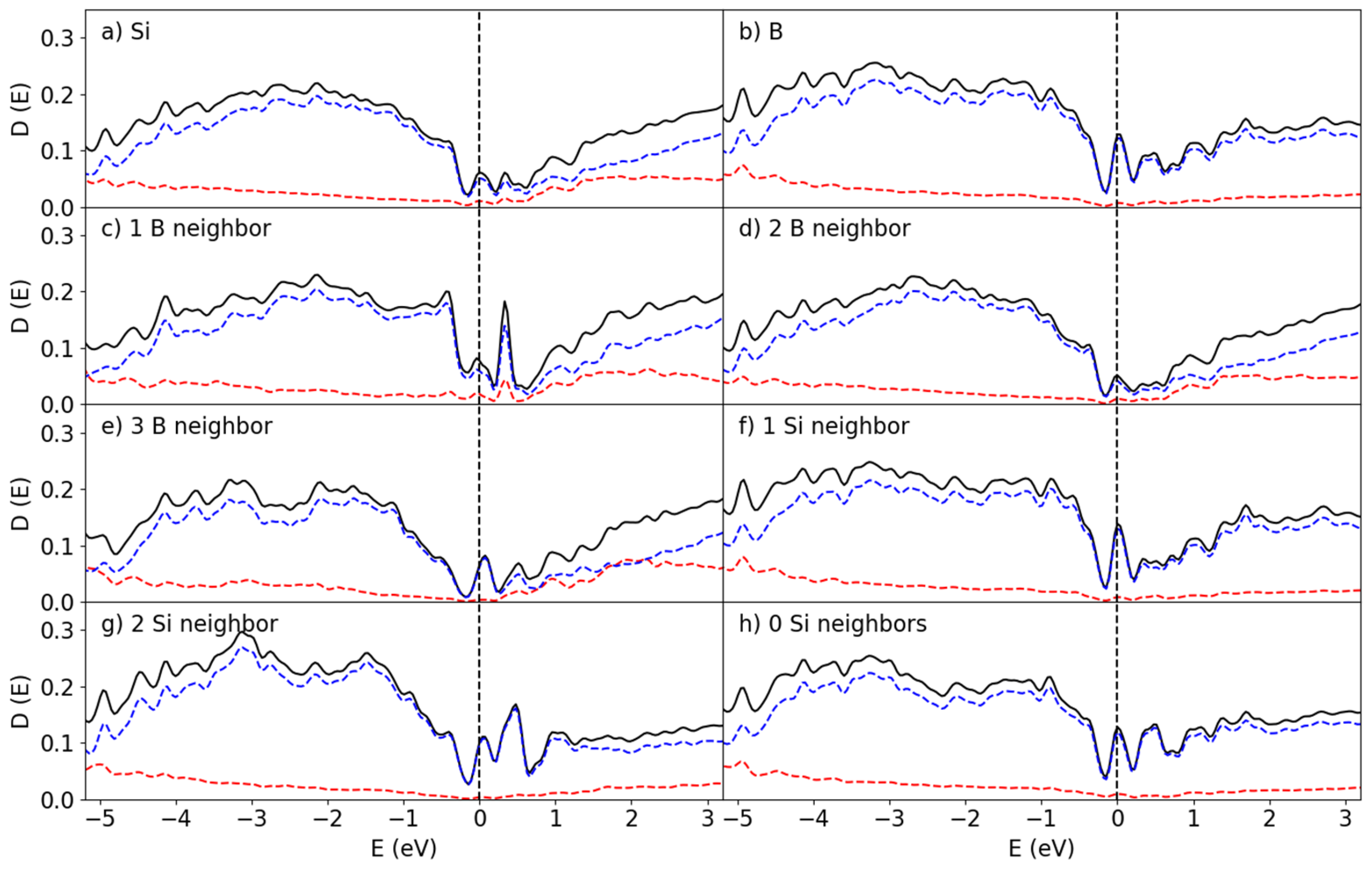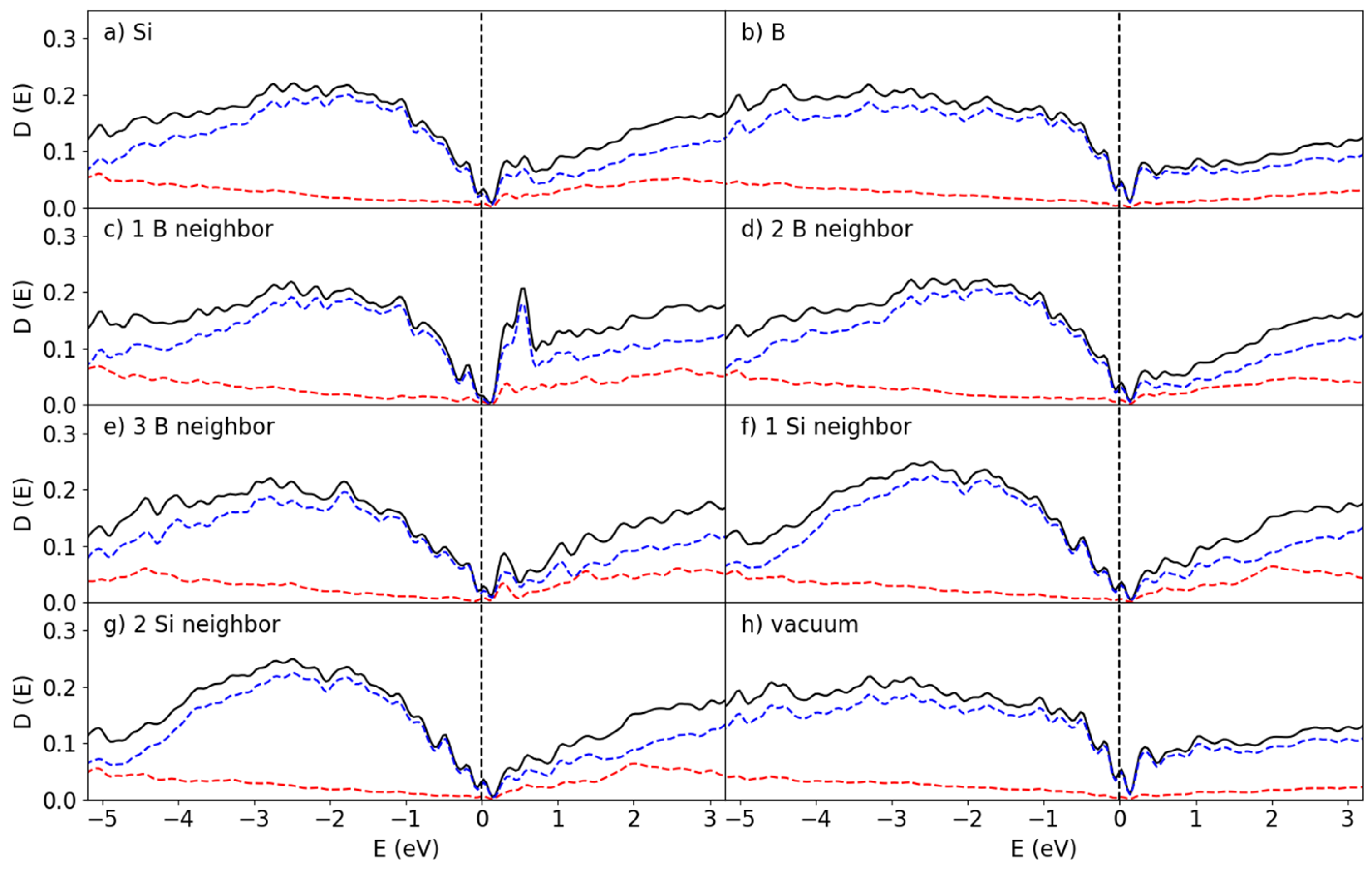 - Fang, C.M.; Mohammadi, V.; Nihtianov, S.; Sluiter, M.H.F. Stability, geometry and electronic properties of BH_n (n = 0 to 3) radicals on the Si{0 0 1}3 × 1:H surface from first-principles. J. Phys. Condens. Matter 2020, 32, 235201. [Google Scholar] [CrossRef]