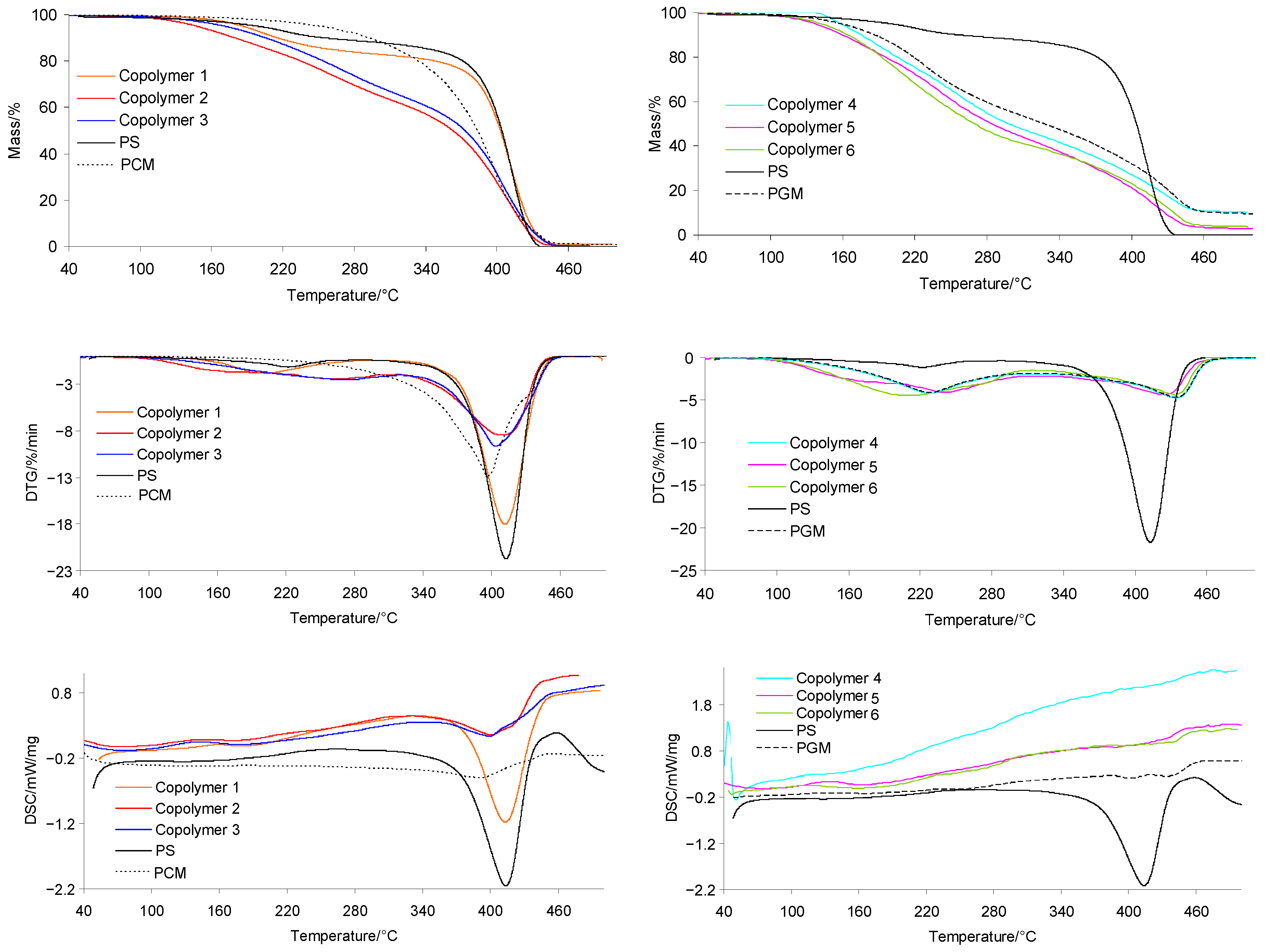 | PCM | PS | PGM | Copolymer 1 | Copolymer 2 | Copolymer 3 | Copolymer 4 | Copolymer 5 | Copolymer 6 |