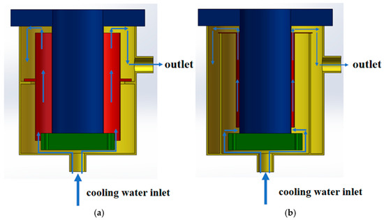 For transparency, the inlet flow area of the annular water jacket channel is reported as (where is the mold outer diameter and is the water jacket inner diameter). The geometric parameters required to calculate (i.e., and ) are provided in Table 2; therefore, the corresponding volumetric flow rate can be obtained from .