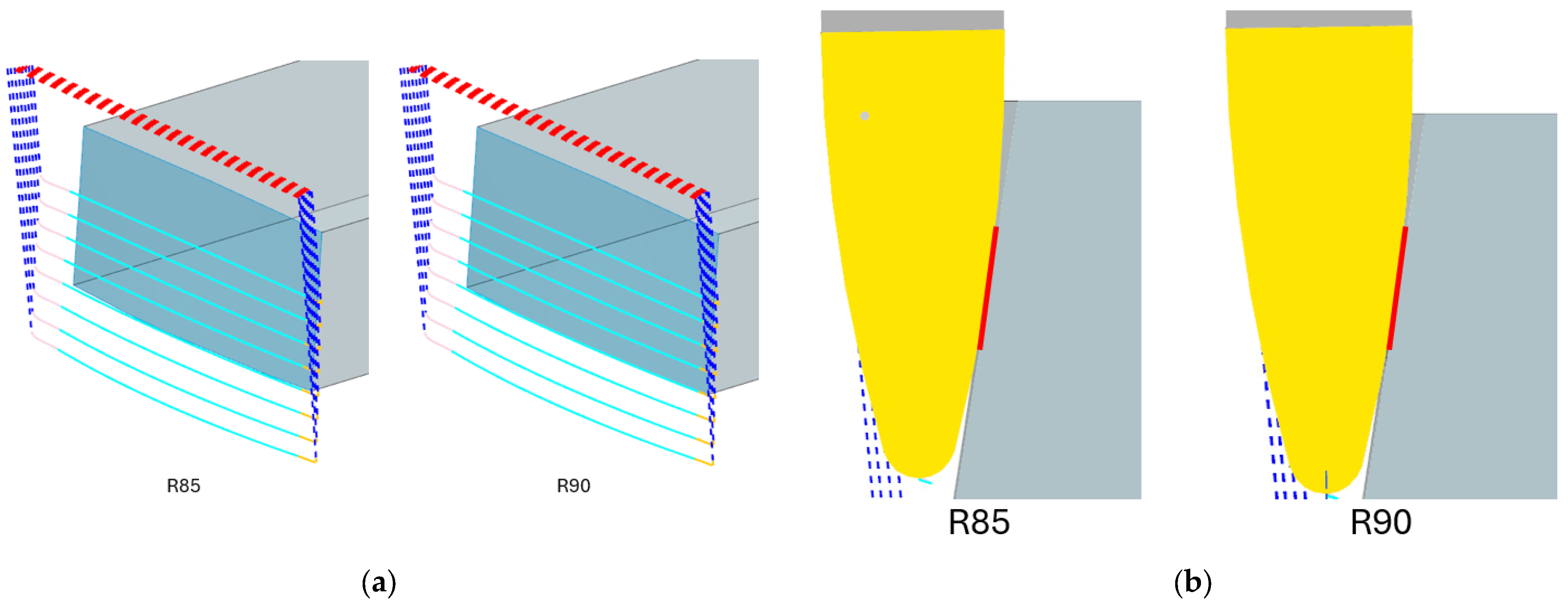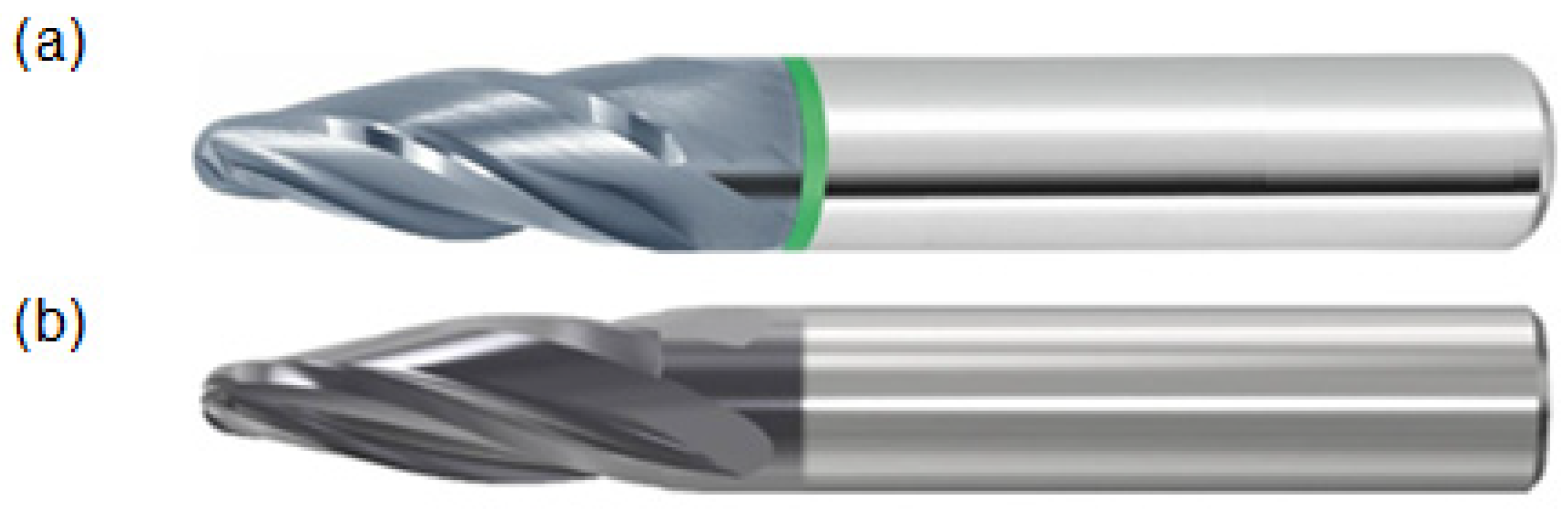 - Herraz, M.; Redonnet, J.M.; Mongeau, M.; Sbihi, M. A new method for choosing between ball-end cutter and toroidal cutter when machining free-form surfaces. Int. J. Adv. Manuf. Technol. 2020, 111, 1425–1443. [Google Scholar] [CrossRef]