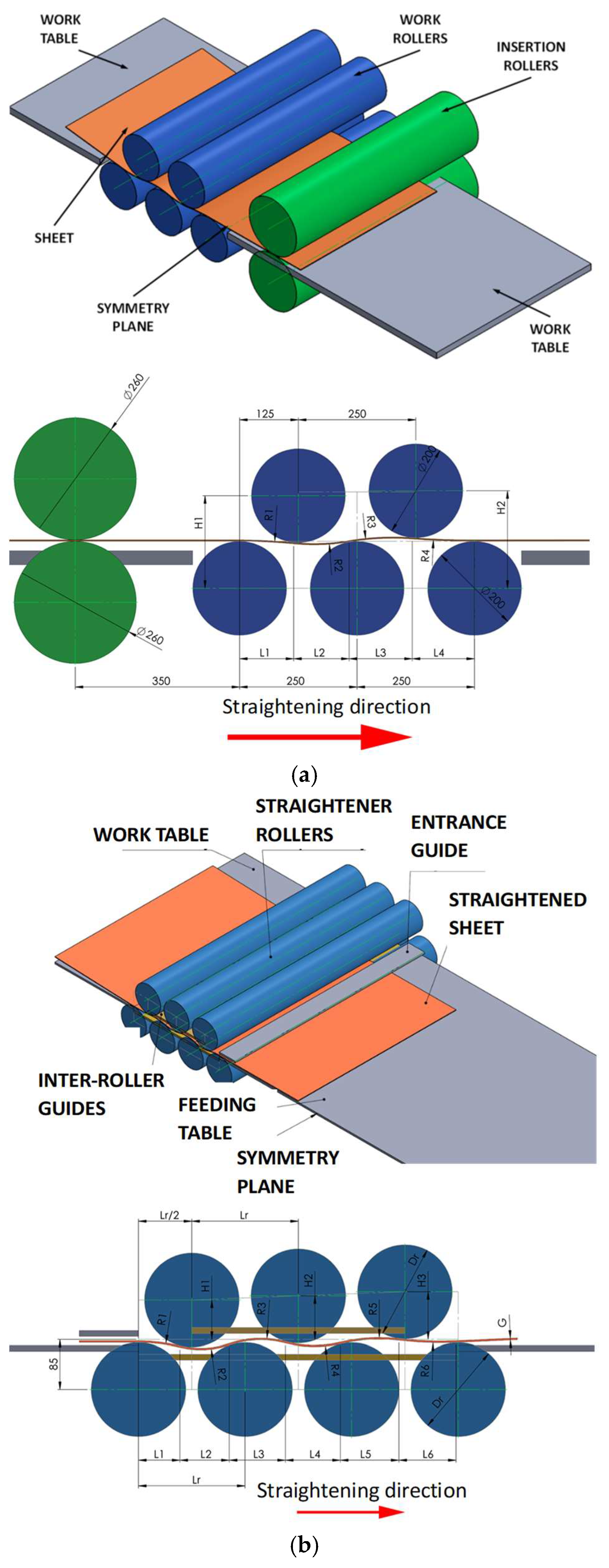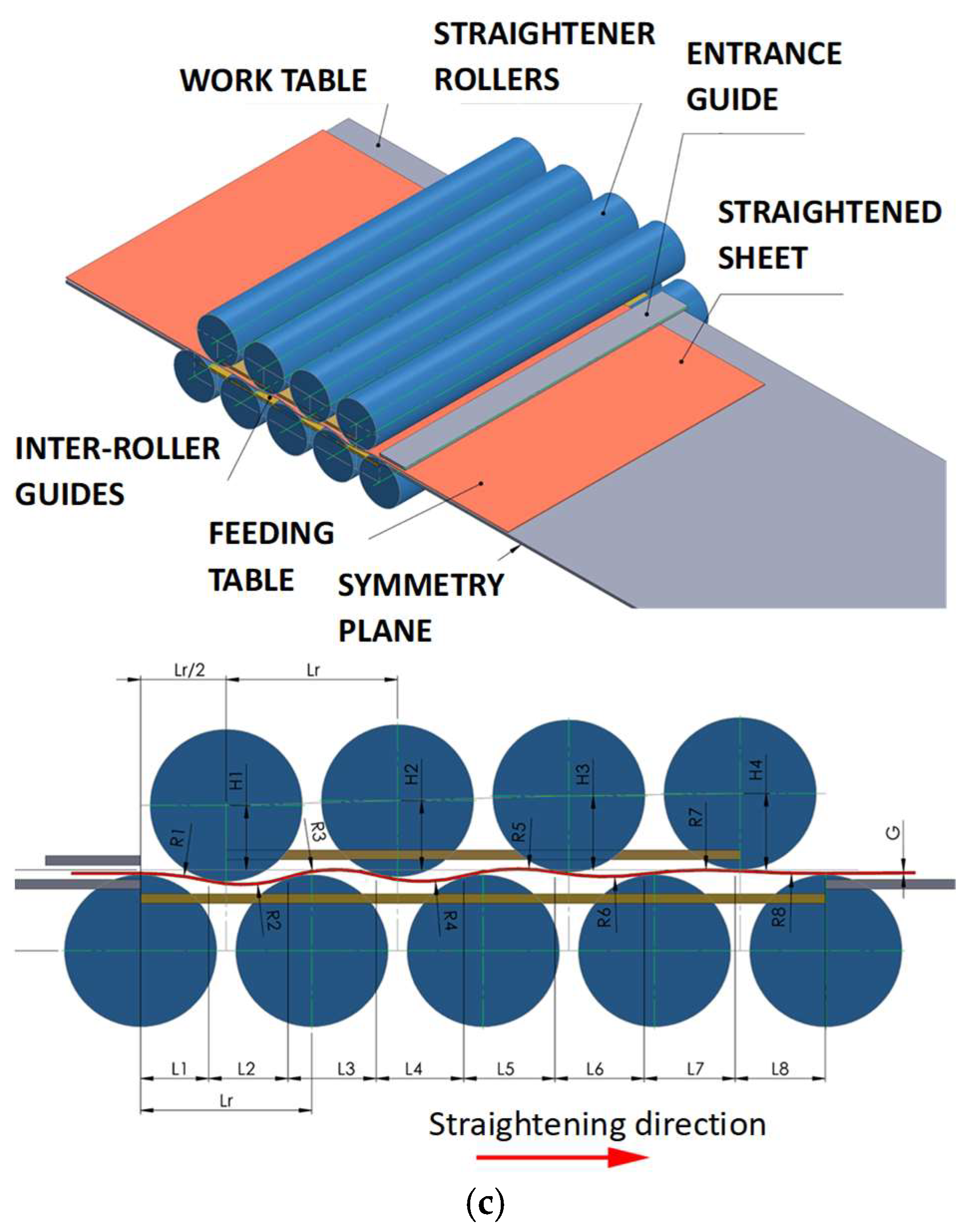 - Perzynski, K.; Pyzynski, K.; Swierczynski, S.; Pidvysots’kyy, V.; Klis, J.; Madej, L. Influence of the roll leveler setup parameters on the quality of high-strength steel leveling operation. Int. J. Adv. Manuf. Technol. 2022, 120, 1203–1217. [Google Scholar] [CrossRef]