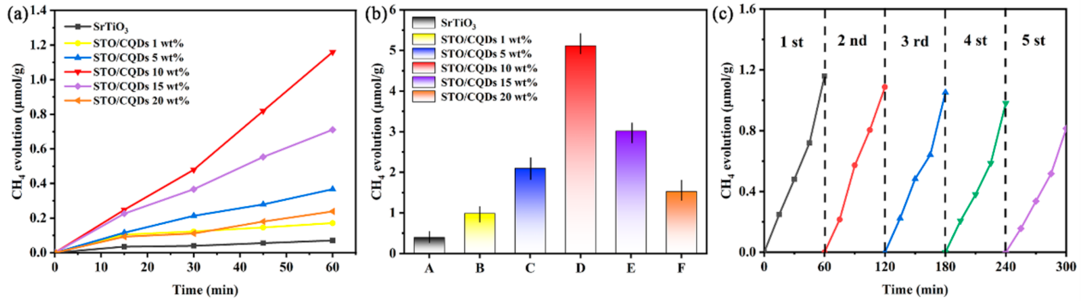 Sun, S.; Liu, Y.; Hu, C.; Zhang, Y.; Zhong, Y.; Wang, D. CQD-Modified SrTiO3 for Enhanced Photocatalytic CO2 Reduction to Methane. Materials 2026, 19, 1075. https://doi.org/10.3390/ma19061075