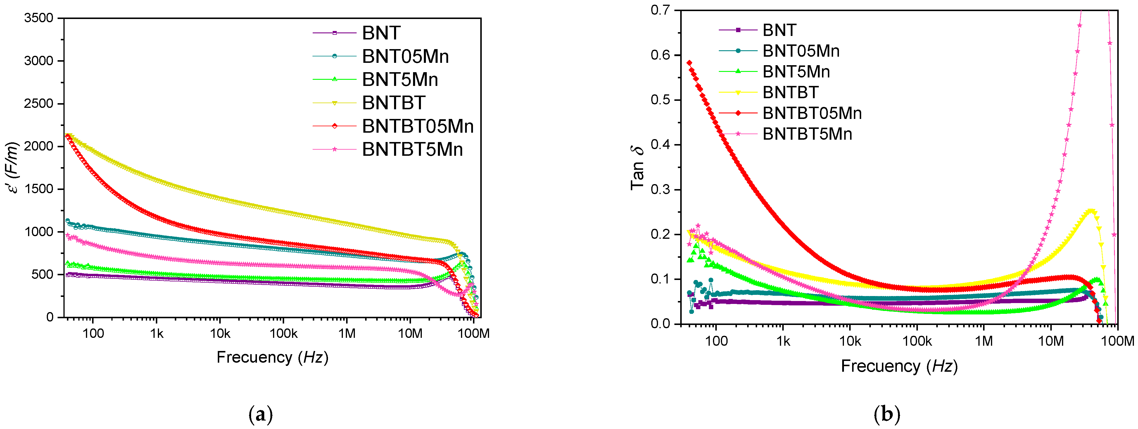 - Li, X.-J.; Wang, Q.; Li, Q.-L. Effects of MnO2 Addition on Microstructure and Electrical Properties of (Bi0.5Na0.5)0.94Ba0.06TiO3 Ceramics. J. Electroceram. 2007, 20, 89–94. [Google Scholar] [CrossRef]