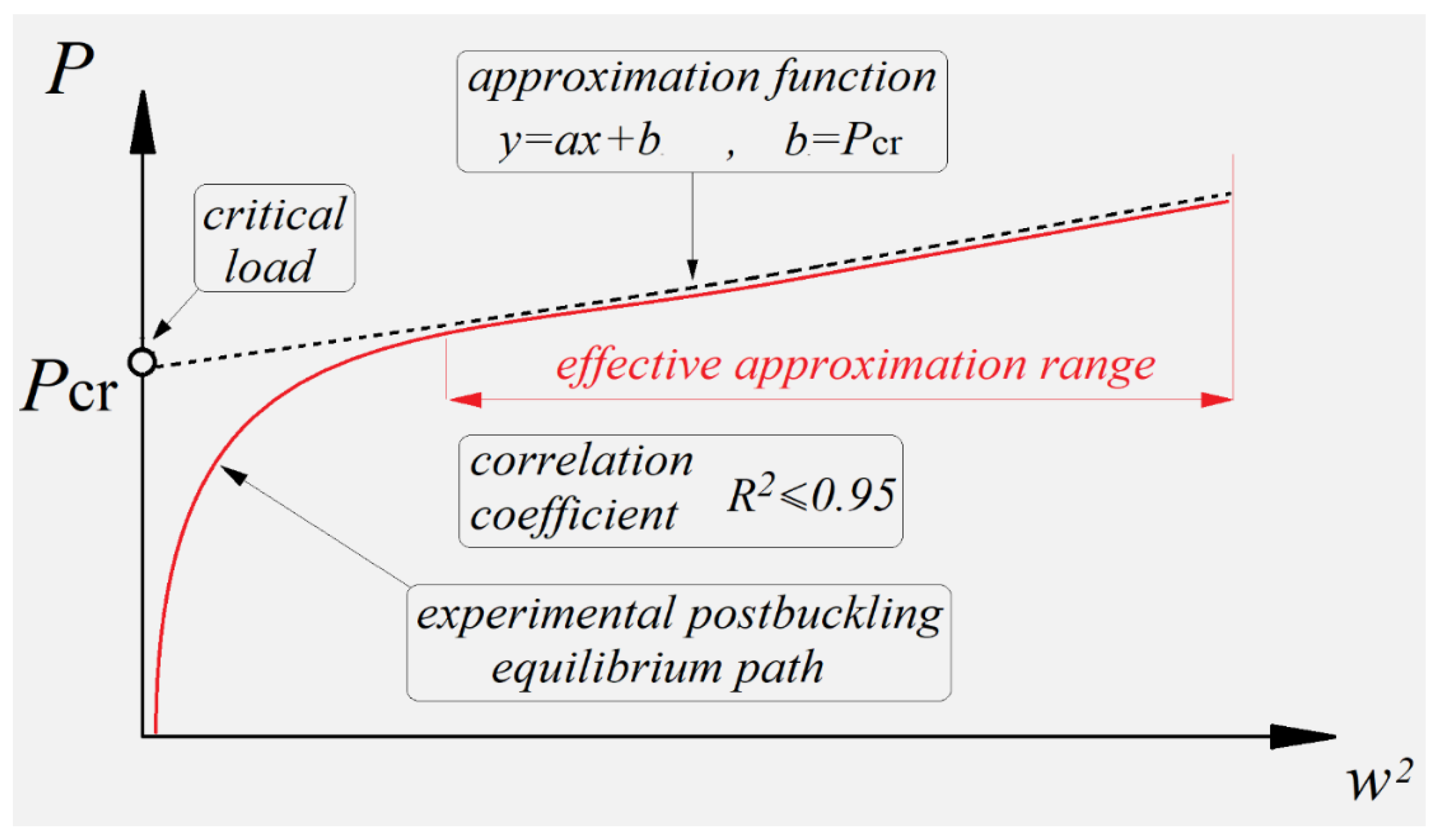 25] have shown that the critical load of a real structure can be calculated by means of approximation methods. The aim of such calculation is to match the approximation function to the experimental results. It should be stressed that the correct selection of measurement points from all available measurement data is very important and has a decisive influence on final results. Related to this is the concept of so-called pivotal points, which was developed by Bronshtein and Semendyayev [