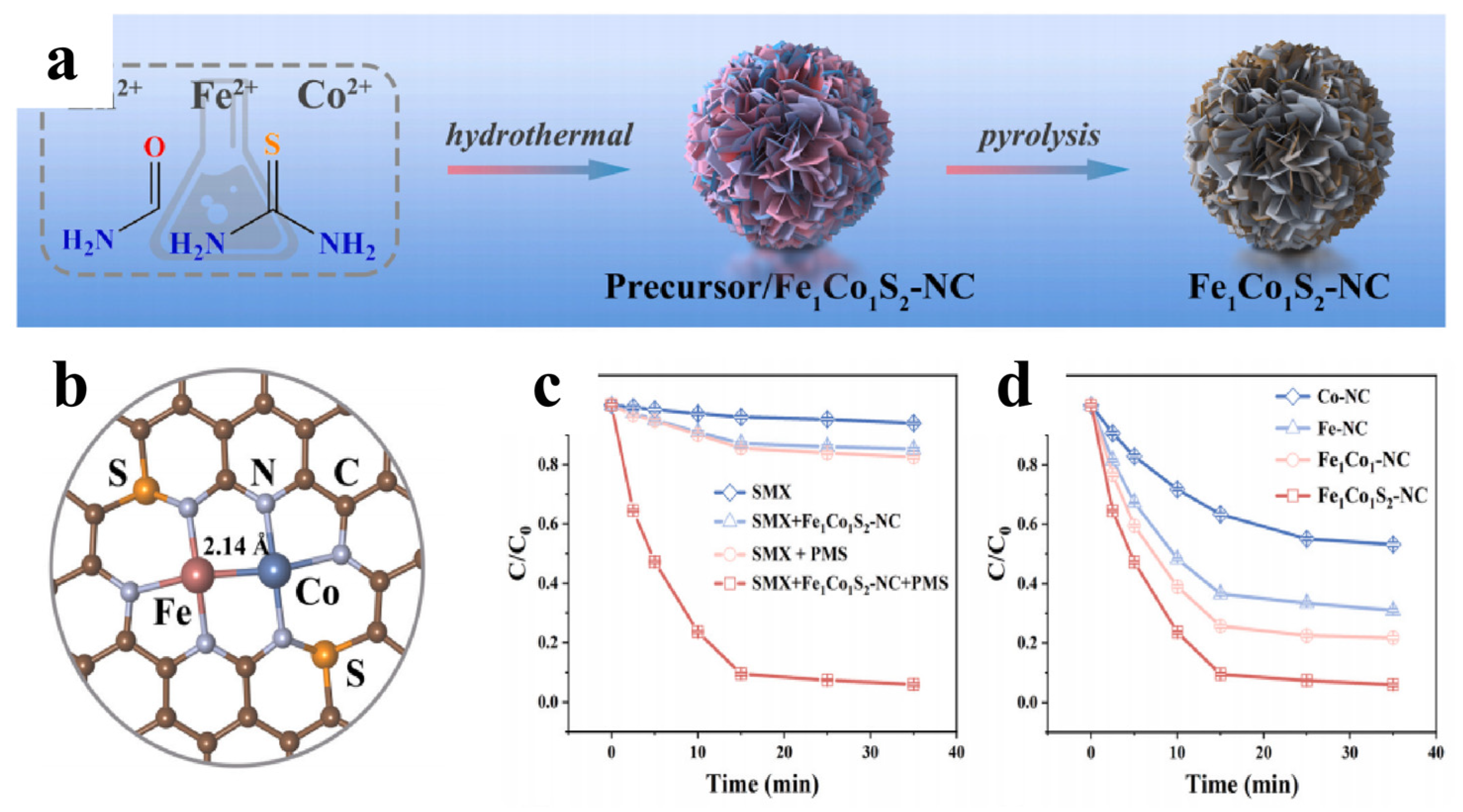 - Cheng, H.; Wei, P.; Liu, M.; Yang, Y.; Huang, L.; Tang, J.; Hu, R. Electronic structure engineering of Fe/Co dual-atom catalysts enhances ultrafast Fenton-like reactions mediated by high-valent iron-oxygen-cobalt bridged complexes for safe pollutant removal. J. Hazard. Mater. 2025, 500, 140555. [Google Scholar] [CrossRef] [PubMed]