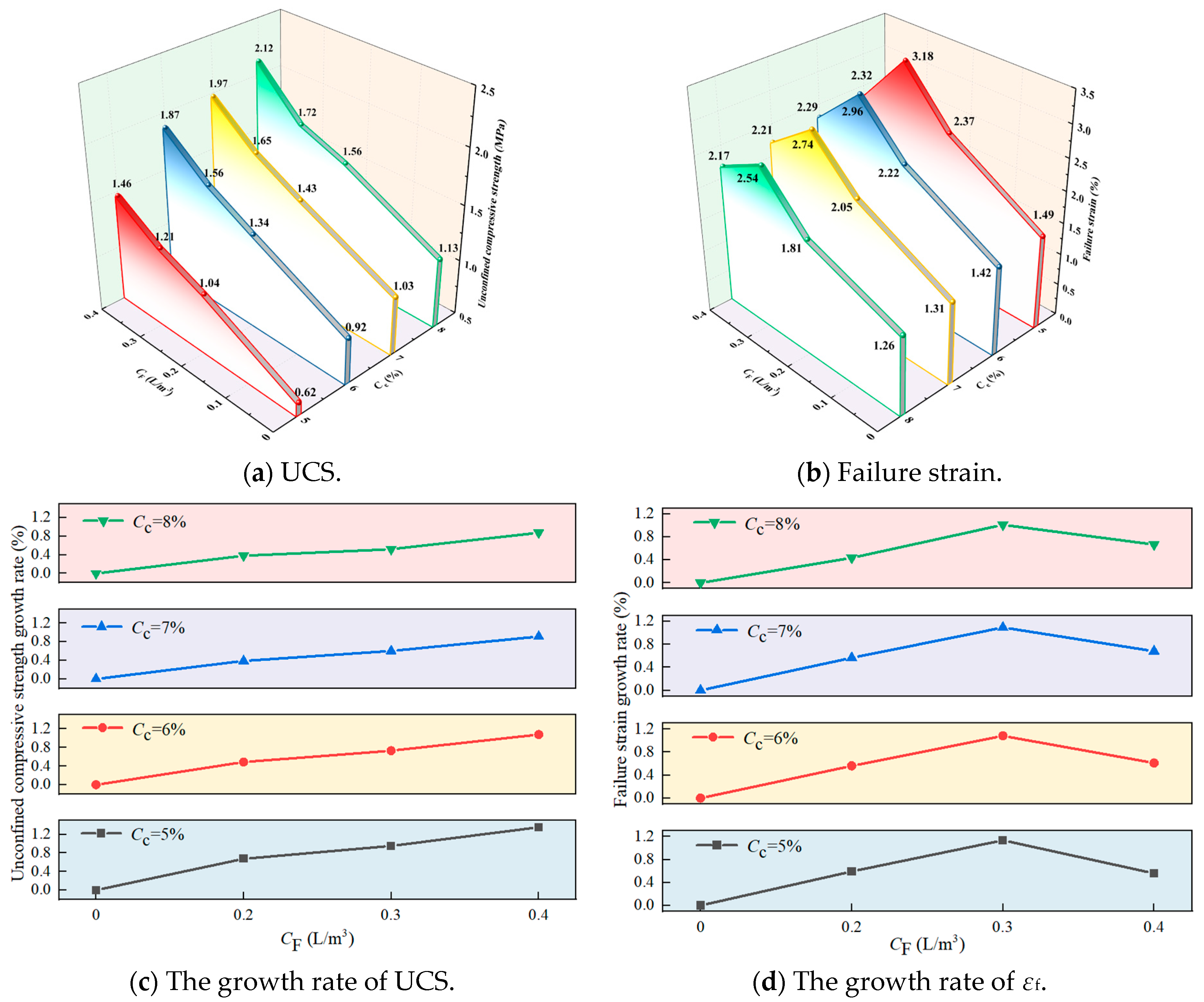 3.1. Effect of Cc and CF on UCS
