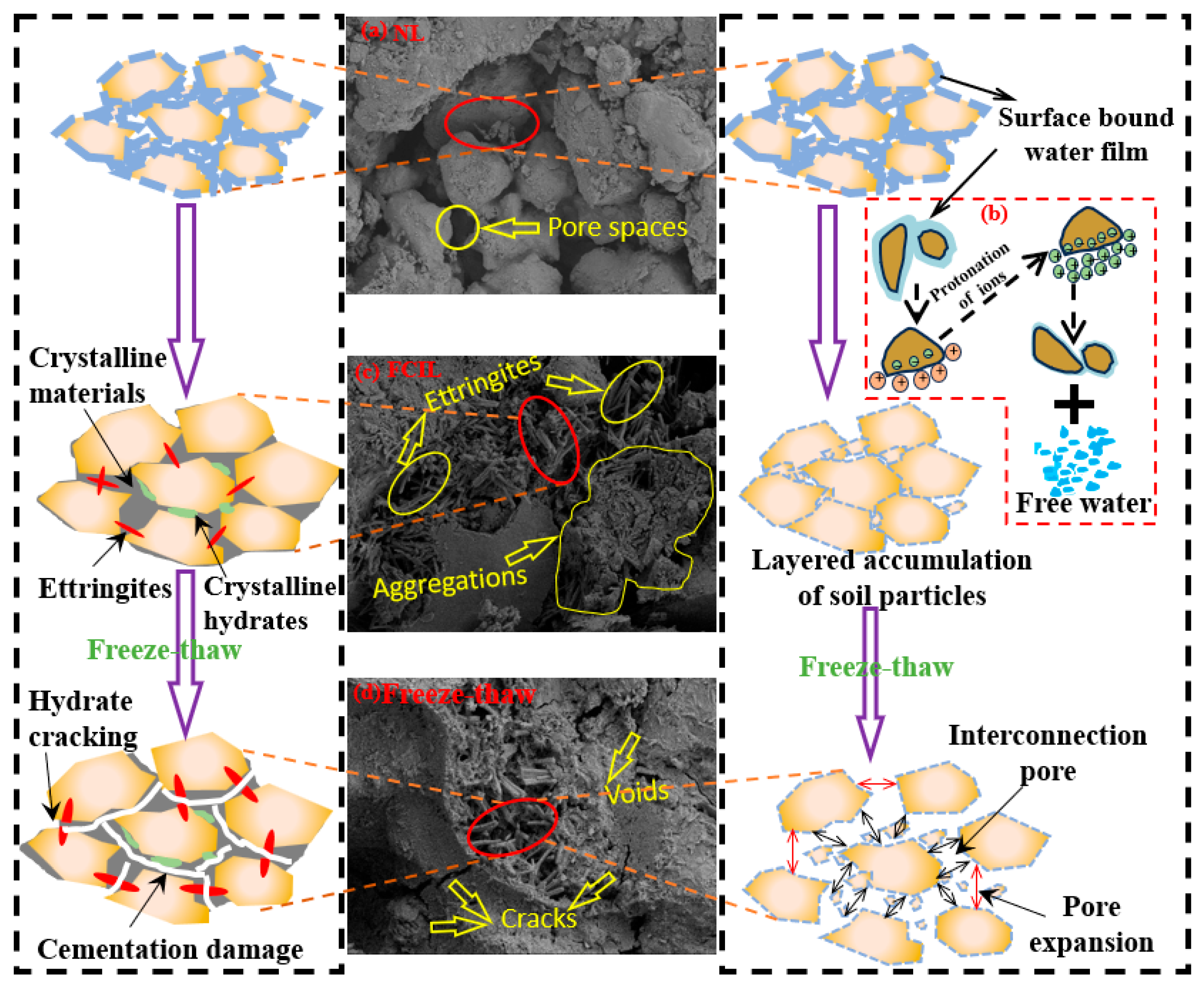 3.7.2. Mechanism Analysis of FCIL Under Freeze–Thaw Cycling
