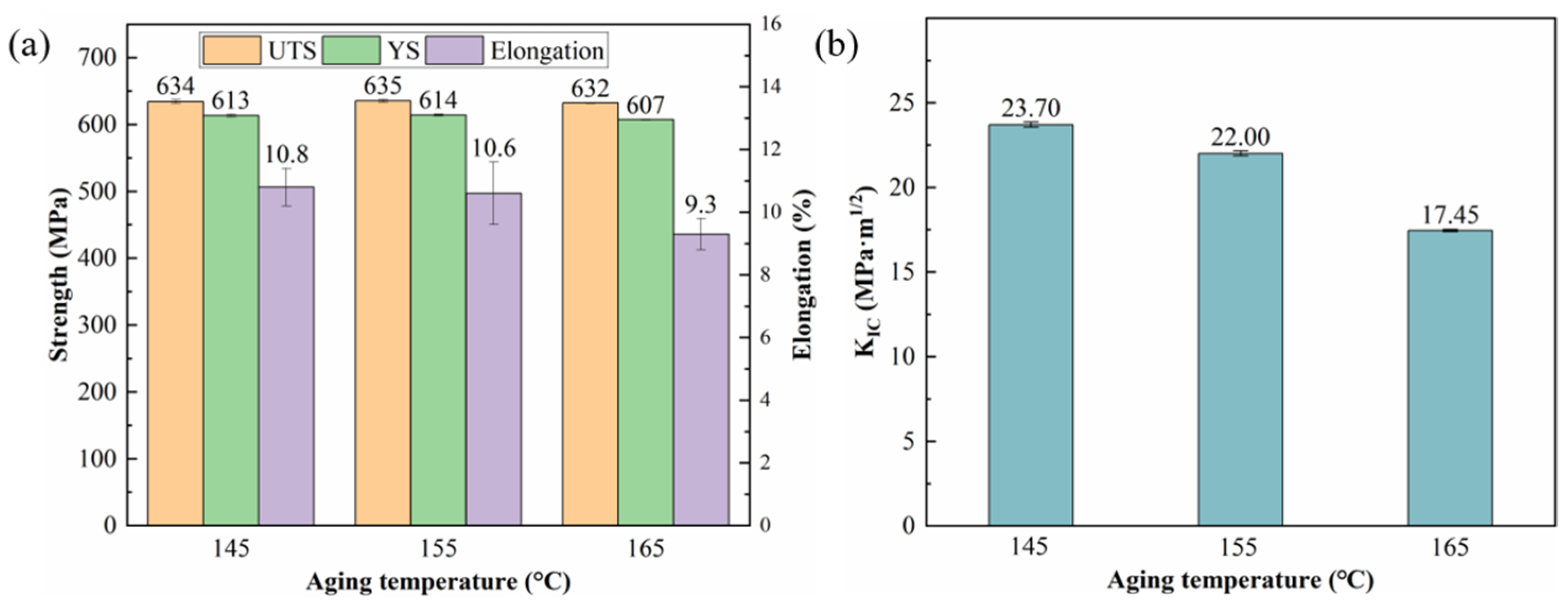 - An increase in the aging temperature accelerates the coarsening of the T1 phase and reduces its number density, while inhibiting the precipitation of the θ′ phase. Grain boundary precipitates coarsen and exhibit a discontinuous distribution. Although the peak strength is not significantly affected, both the fracture toughness and fatigue crack growth resistance deteriorate markedly.
