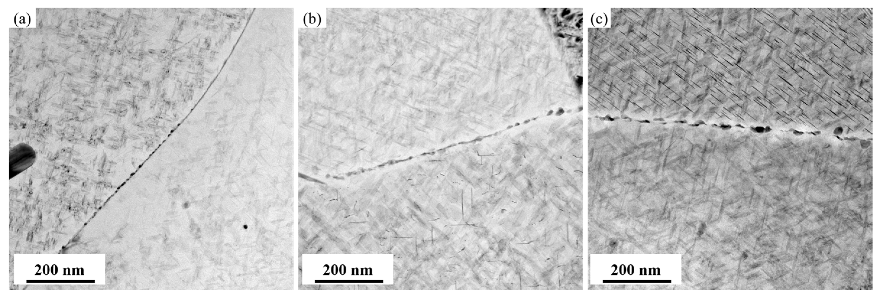 4.2. Influence of Aging Temperature on Precipitation Competition and Boundary Characteristics