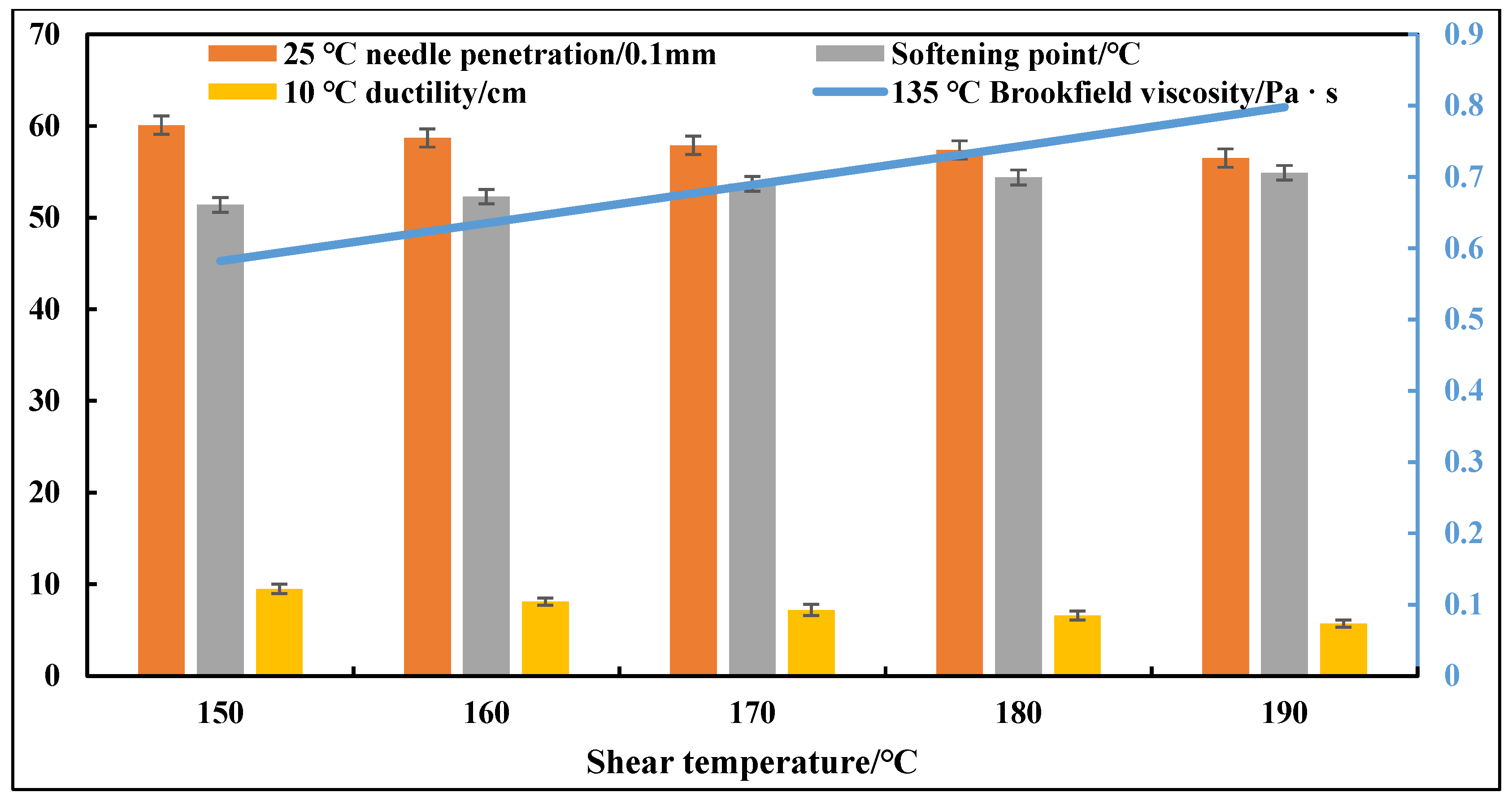3.1. Optimization of DCLR-Modified Asphalt Preparation Process