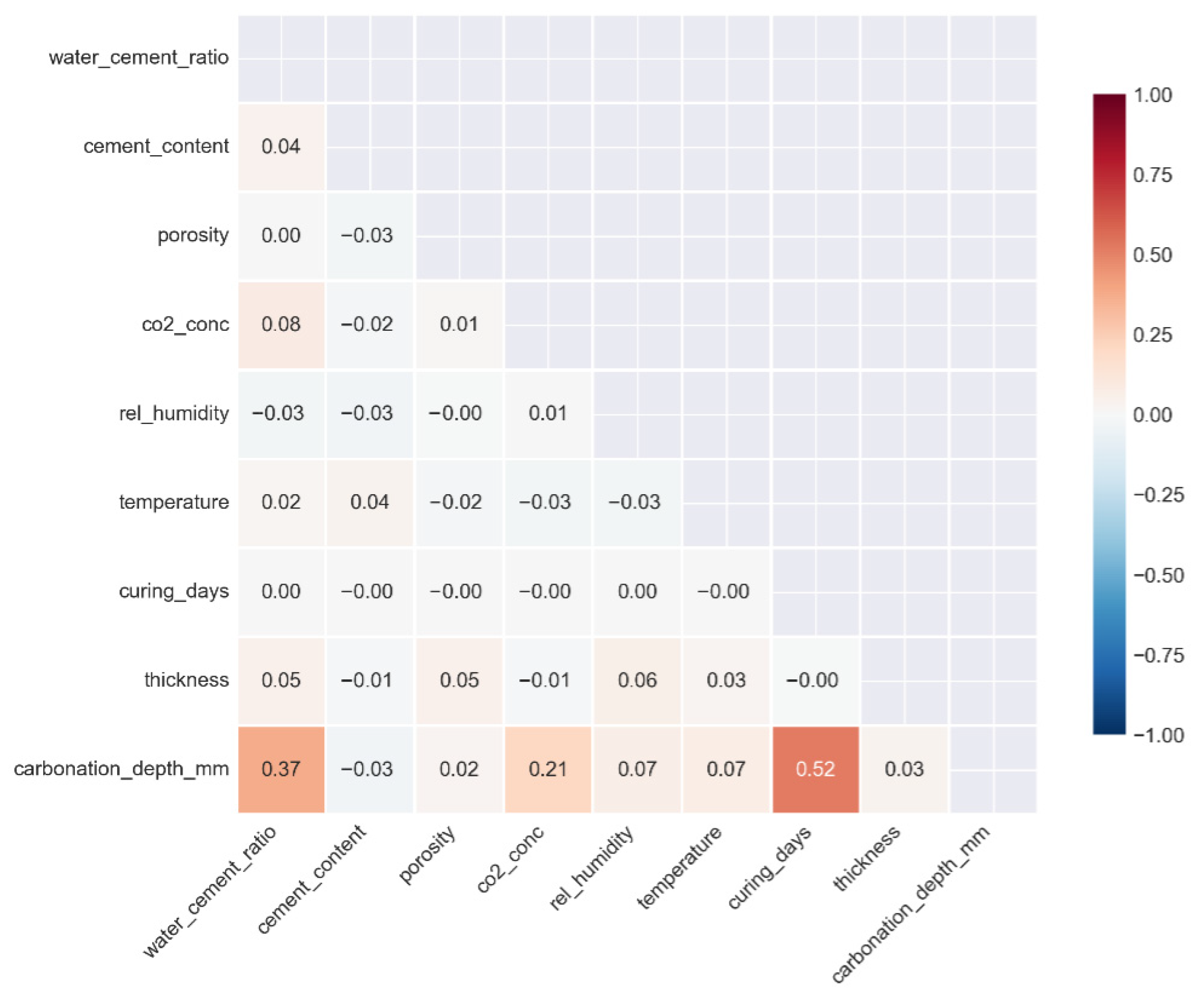 Section 3. Therefore, the model should be regarded as a decision-support tool rather than a stand-alone acceptance criterion in poorly represented conditions, such as very high carbonation depths, extended exposure durations, or material–environment combinations that fall outside the dominant training distribution.