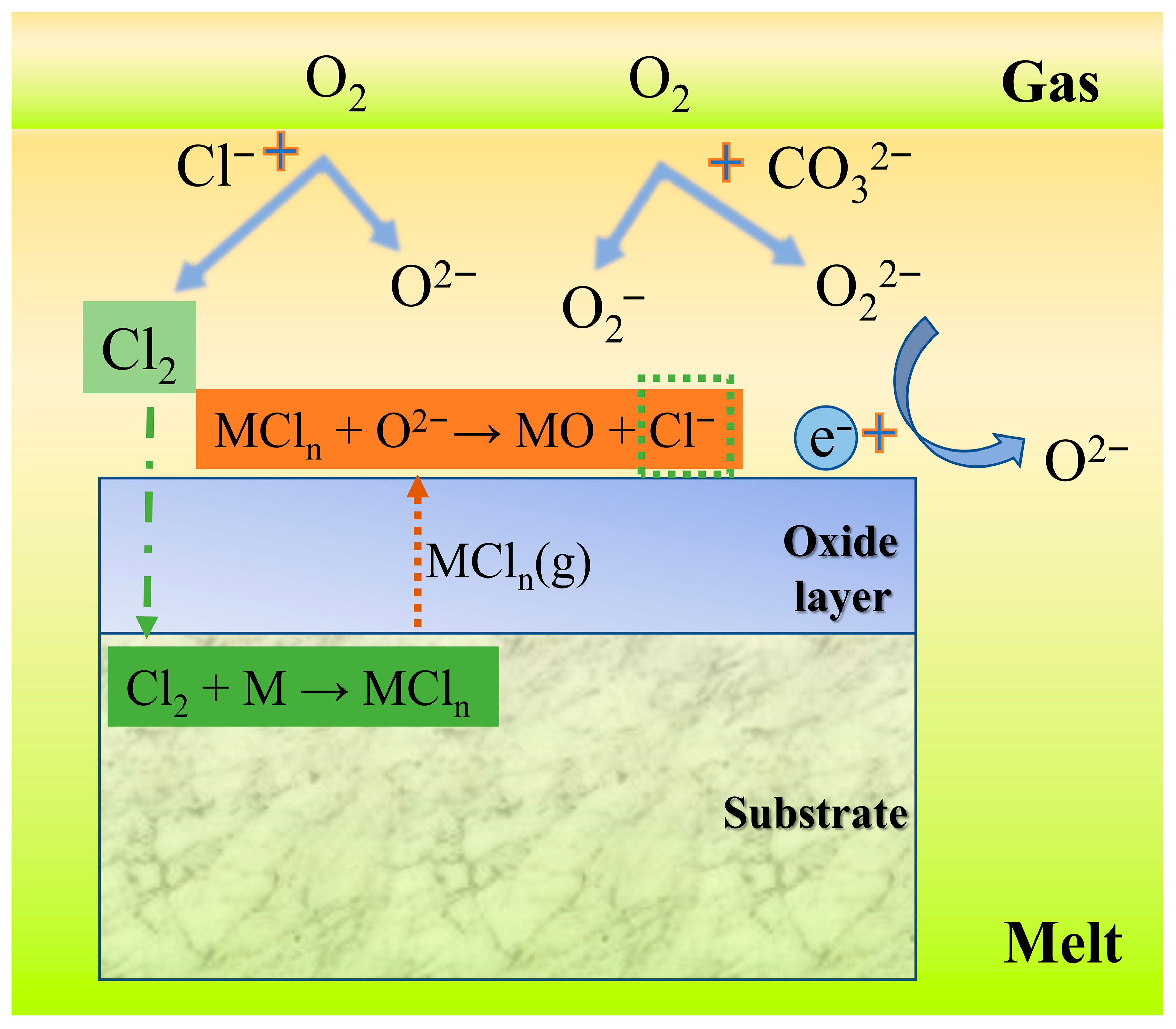 - Dorcheh, A.S.; Durham, R.N.; Galetz, M.C. High temperature corrosion in molten solar salt: The role of chloride impurities. Mater. Corros. 2017, 68, 943–951. [Google Scholar] [CrossRef]