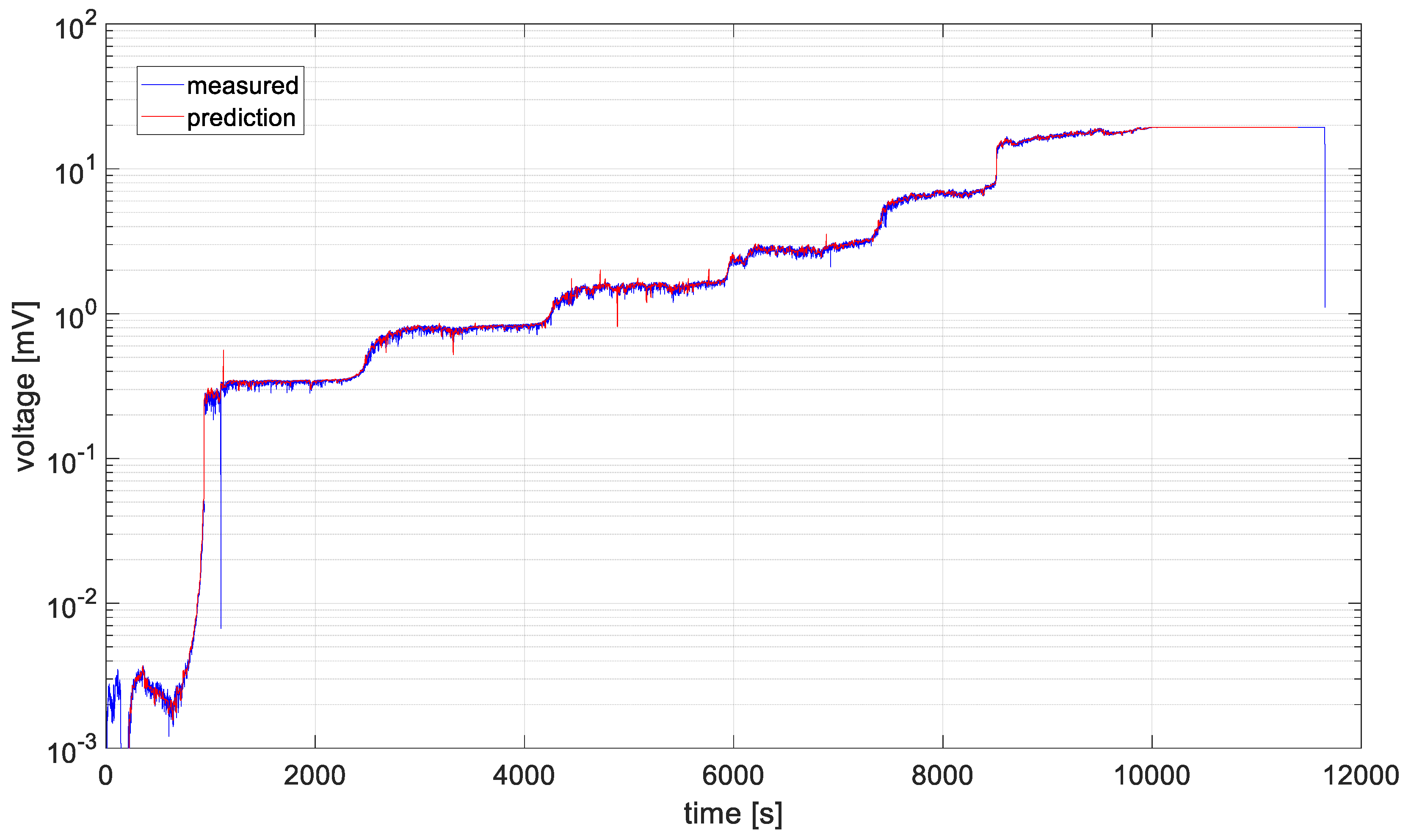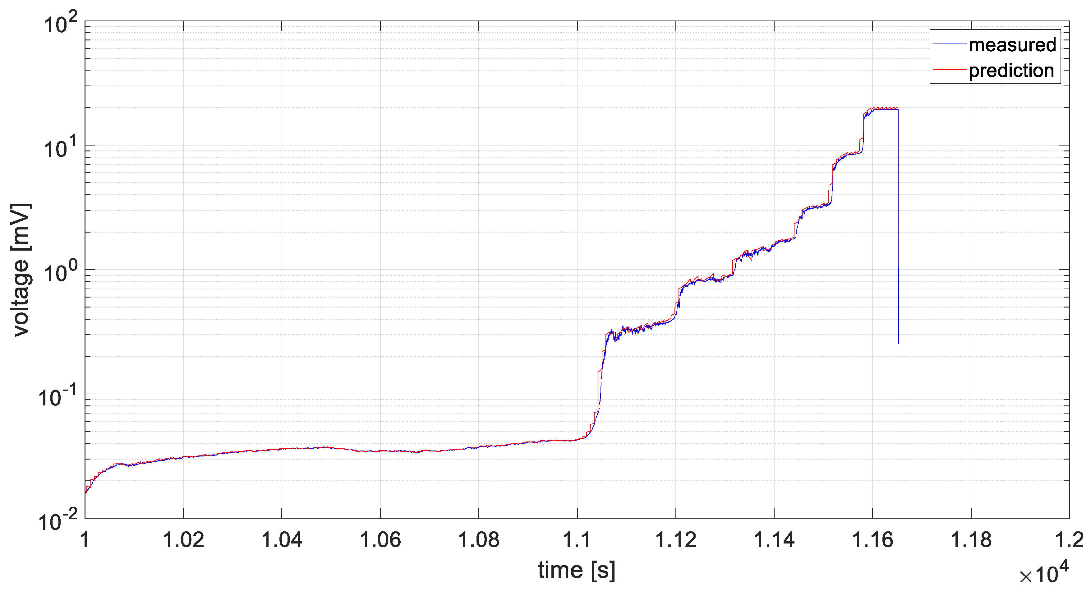 The prediction of crack propagation was carried out using MATLAB 2024a software. A univariate ARIMA model was developed for the voltage time series using the
