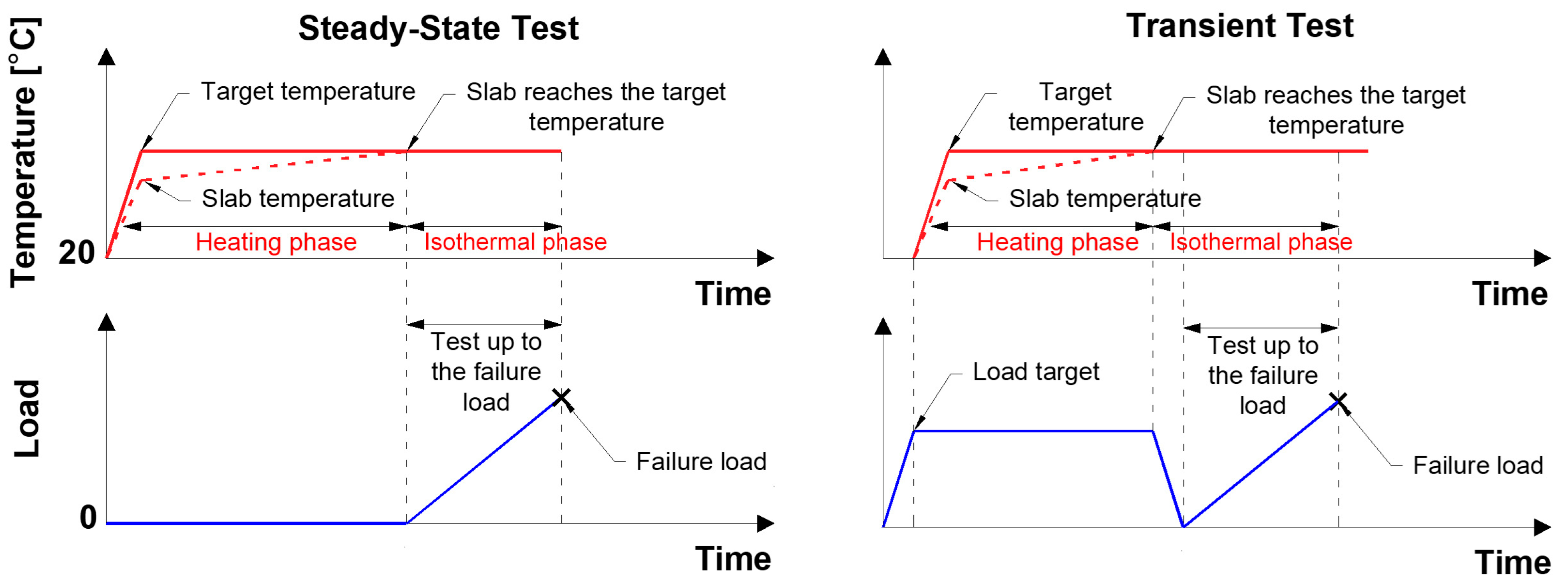 | Type of Test | Slab ID | Sustained Load | Temperature Target [°C] |