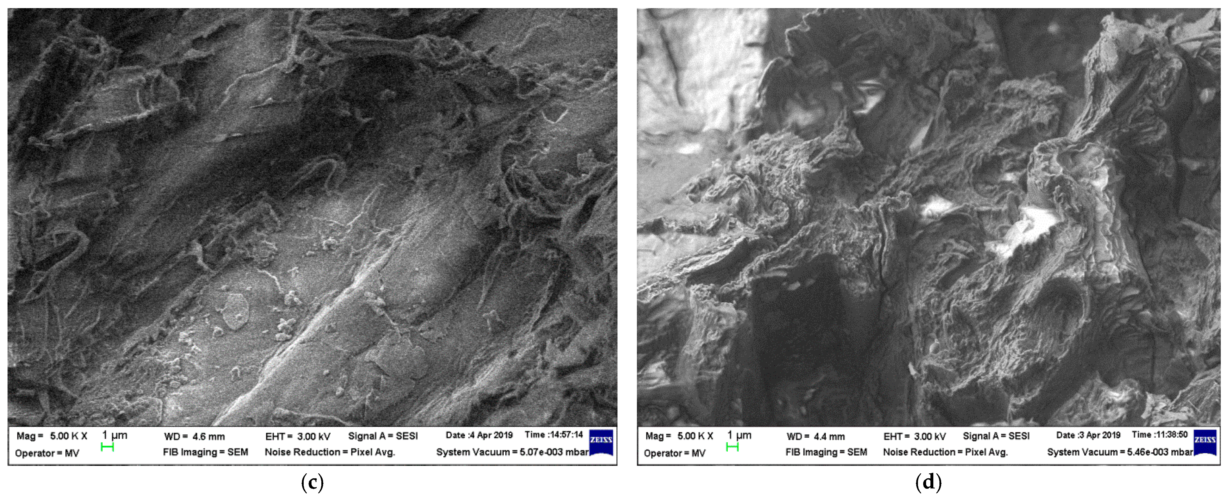 - Field emission and focused ion beam scanning electron microscopy (SEM) were conducted using a Quanta FEG 250 (Thermo Fisher Scientific Inc., Waltham, MA, USA). The method of analysis employed water vapor to safeguard the samples from harm, and the occurrence of SEM charging was greatly diminished because of the low vacuum in the specimen chamber.