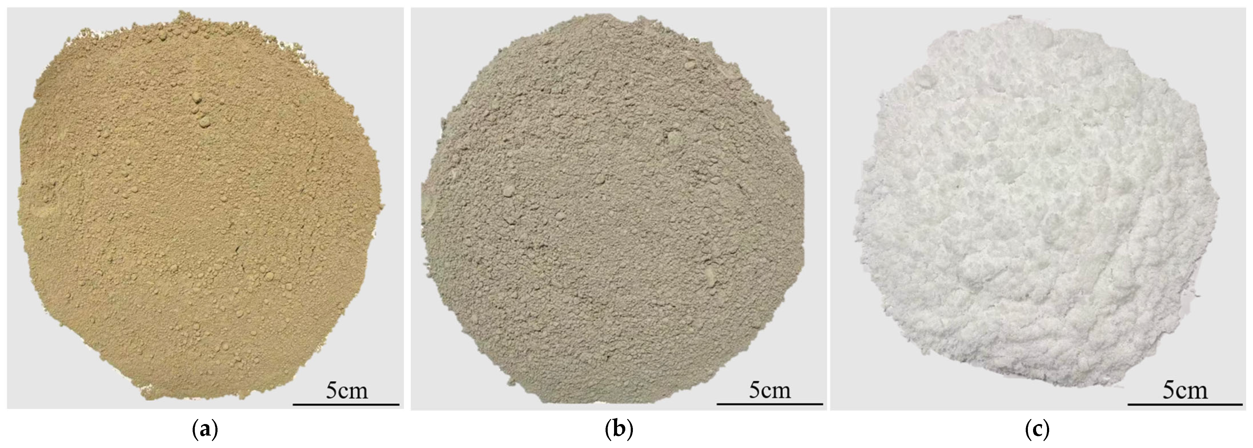 Soil samples were obtained from the Phase III Project of the Hangyong Double Line in Beilun District, Ningbo, China at depths of 73.0–80.8 m. The material is a yellowish-green silty clay exhibiting a hard-plastic consistency, as shown in Figure 1. The basic physical properties of silty clay are presented in Table 1, respectively. P.O 42.5 Ordinary Portland Cement (OPC) purchased from Conch Company of China (Wuhu, China) was used as the binder; its major chemical constituents are detailed in Table 2.