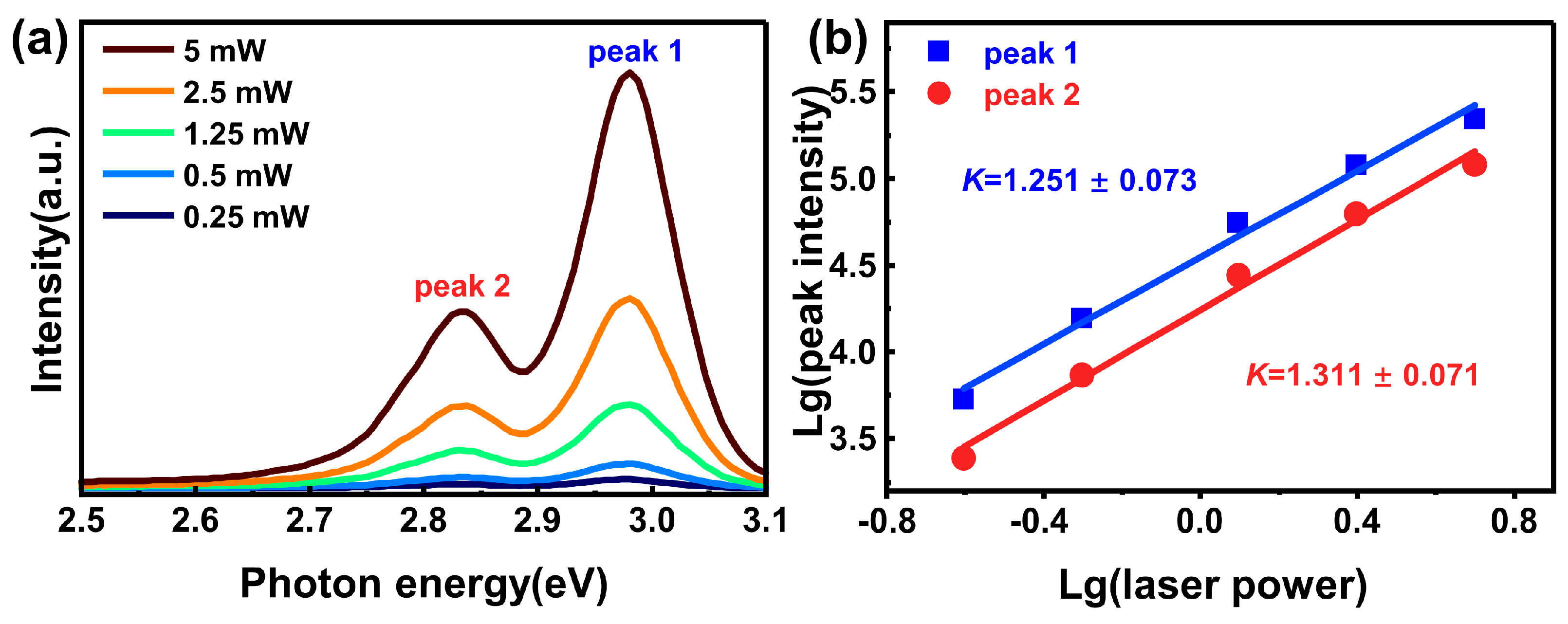 3.4. Power-Dependent Photoluminescence