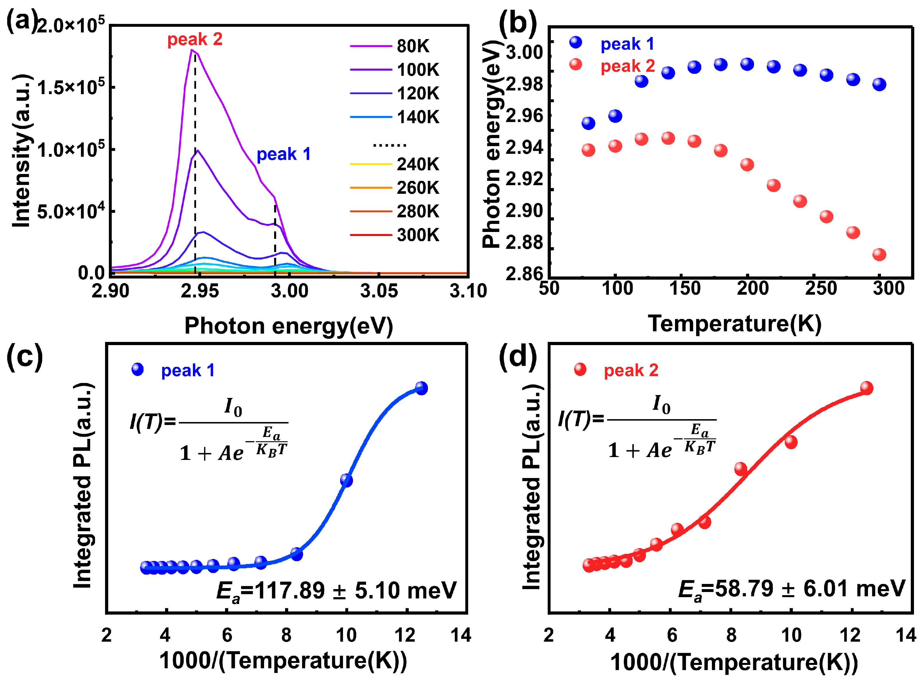 3.5. Temperature-Dependent Photoluminescence