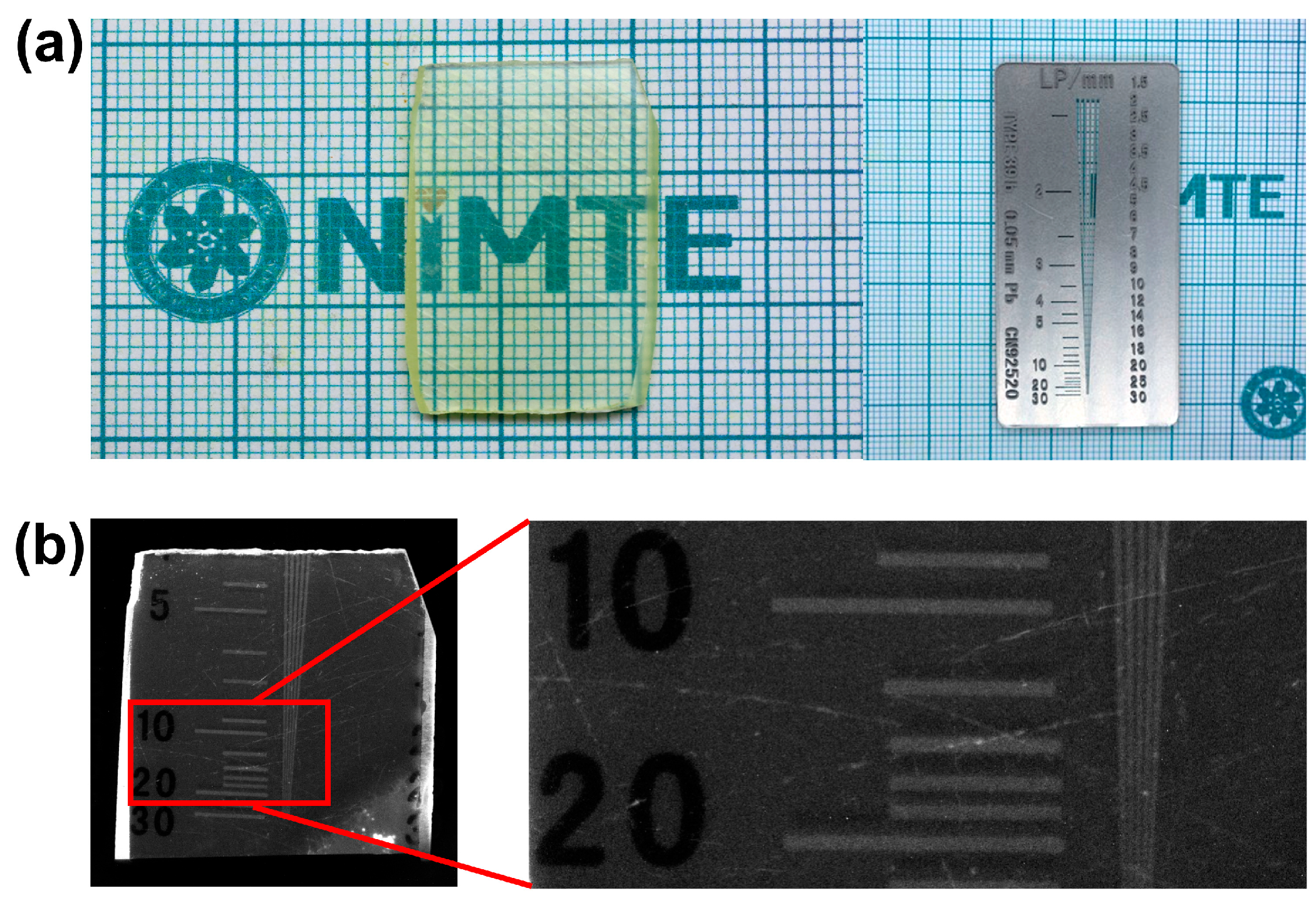- Wang, H.; Sun, Q.; Yang, F.; Li, Z.; Sun, L.; Zhang, X.; Zhao, Z.; Hu, W. Ultrahigh Resolution X-Ray Imaging with Thin-Film Scintillators Based on Aggregation-Induced Delayed Fluorescence Luminogens. SmartMat 2025, 6, e70002. [Google Scholar] [CrossRef]