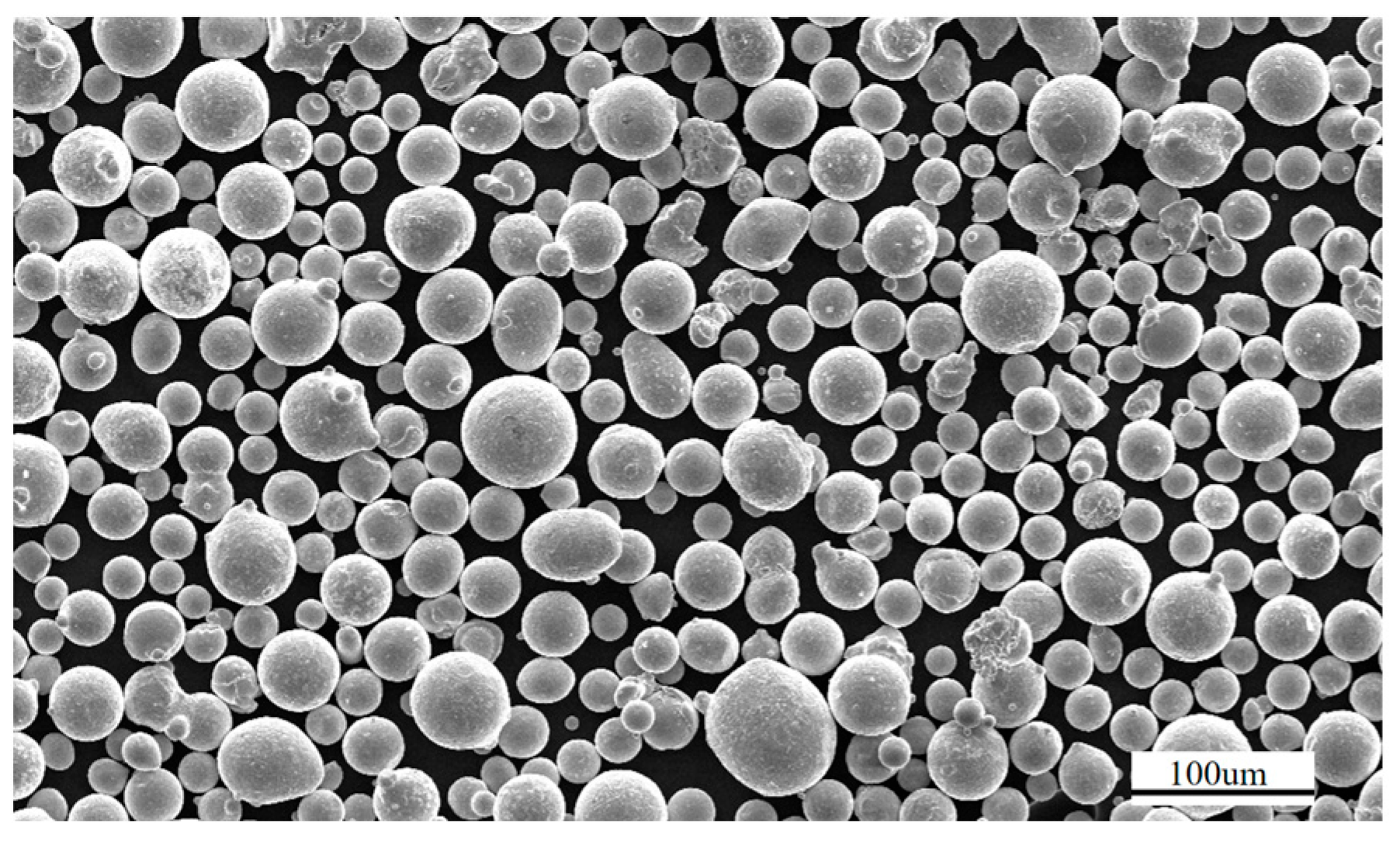 31]. The particle size distribution was 15–54 um, with particle size distributions of D (10): 21.53 um, D (50): 33.162 um, and D (90): 51.37 um, the particle size and morphology of GH3625 powder are shown in