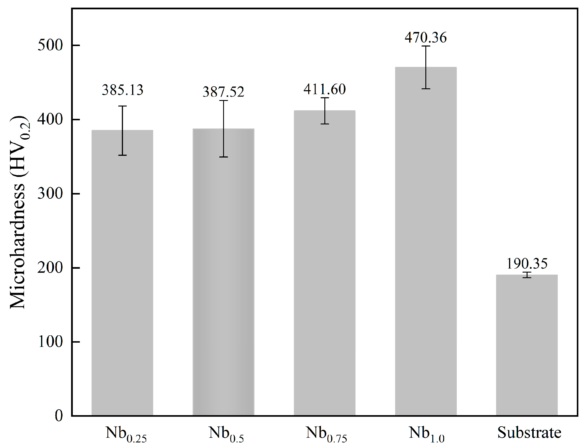 Figure 12 shows the Vickers microhardness of the Nb