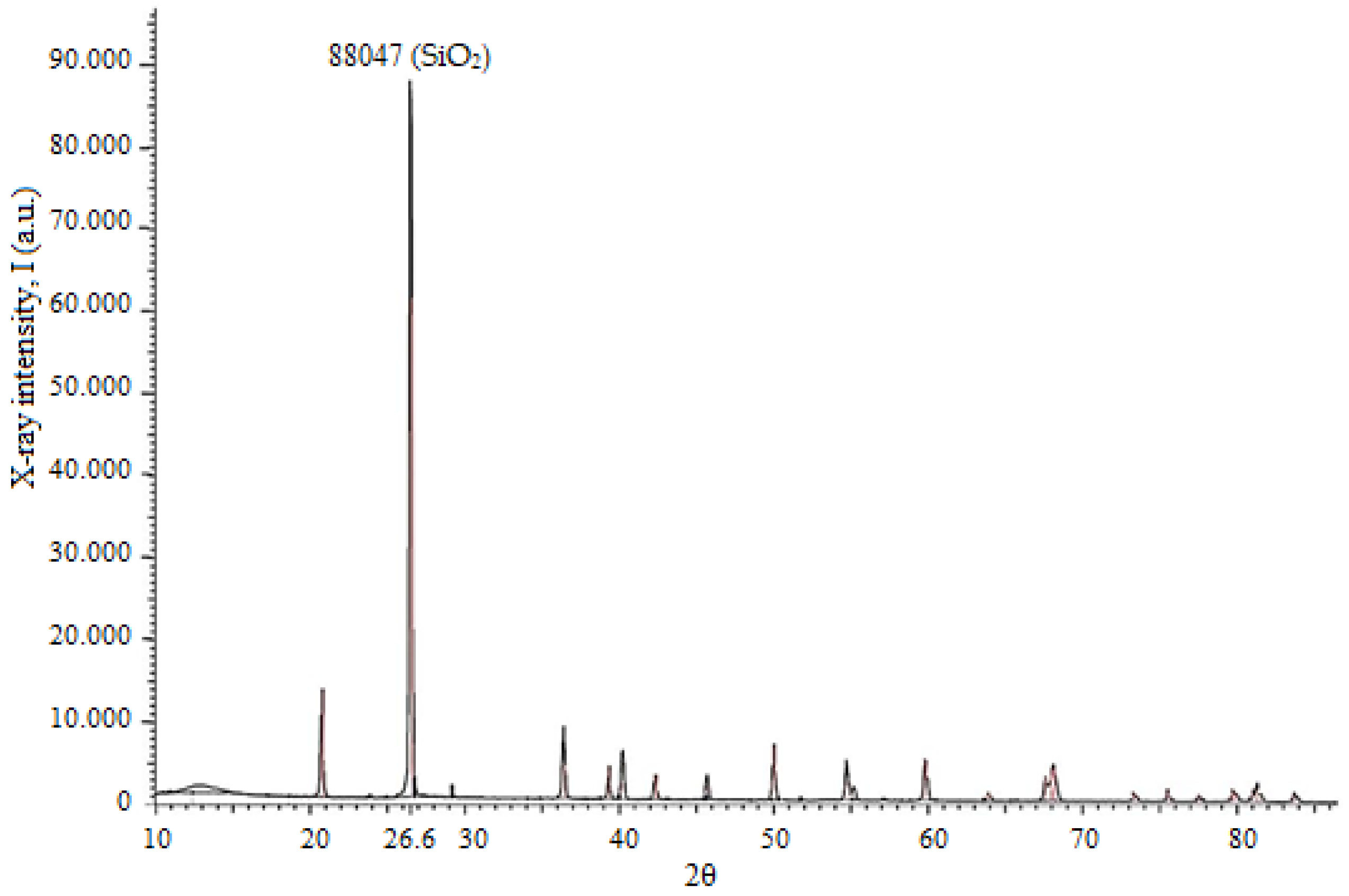 The phase composition of the quartz sand was further investigated using X-ray diffraction (XRD) analysis (
