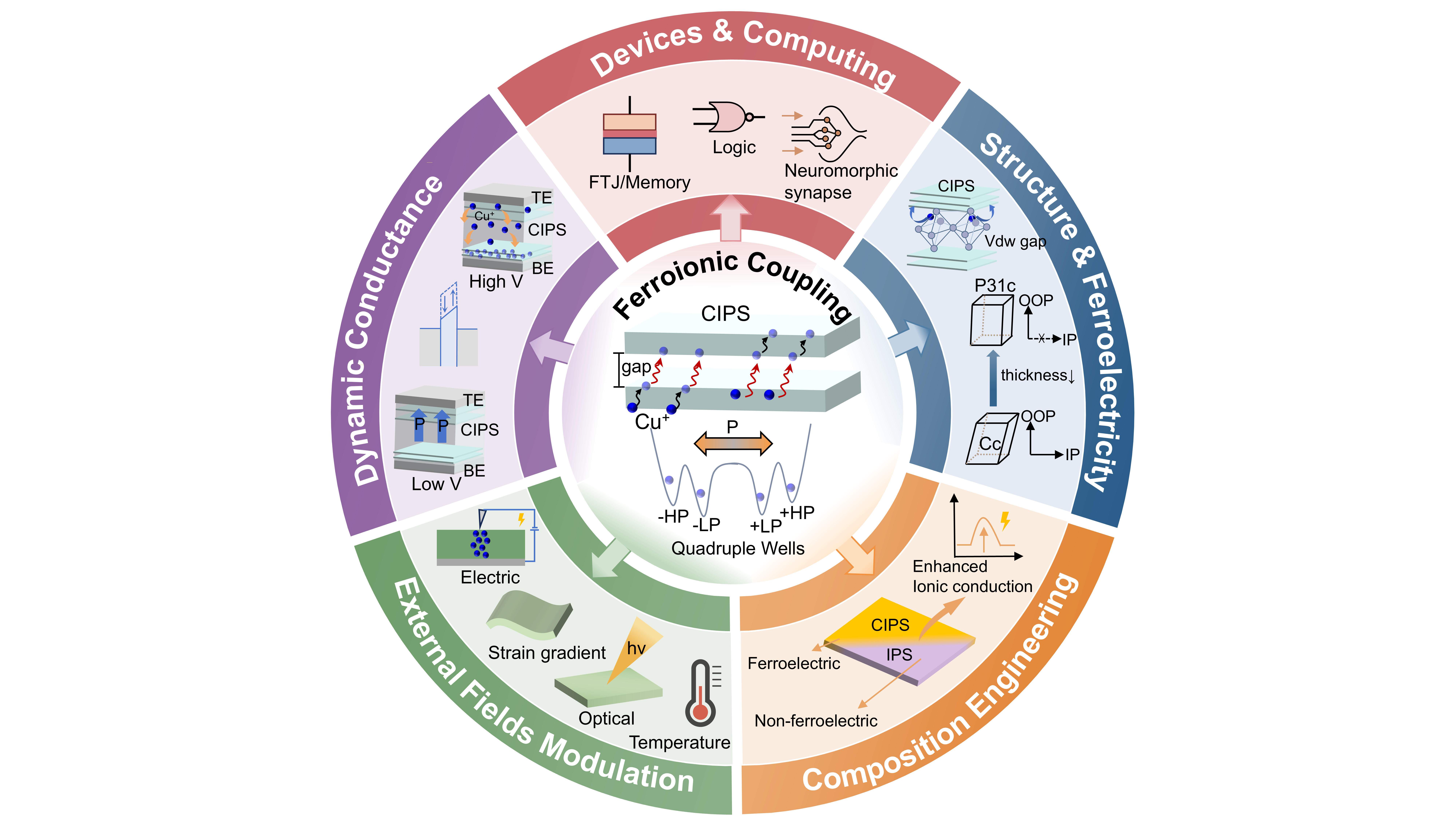 | Au/CIPS/Au | Artificial synapse | Ci et al. [39] | Strong ferroelectric-ionic coupling |