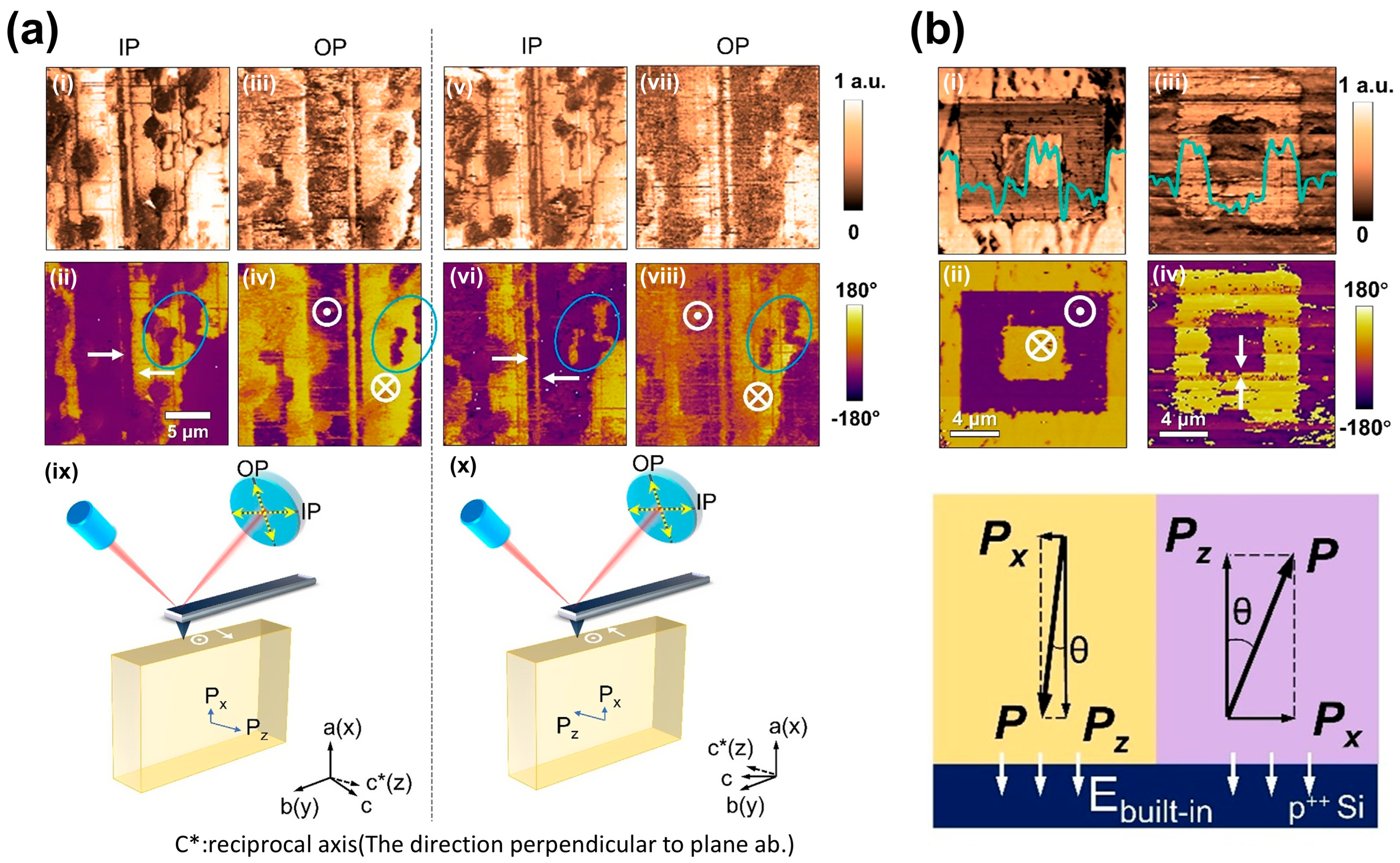 | − | >100 nm | heavily doped silicon | Monoclinic Cc (No. 9) | √ | √ | Vector-PFM | [61] |