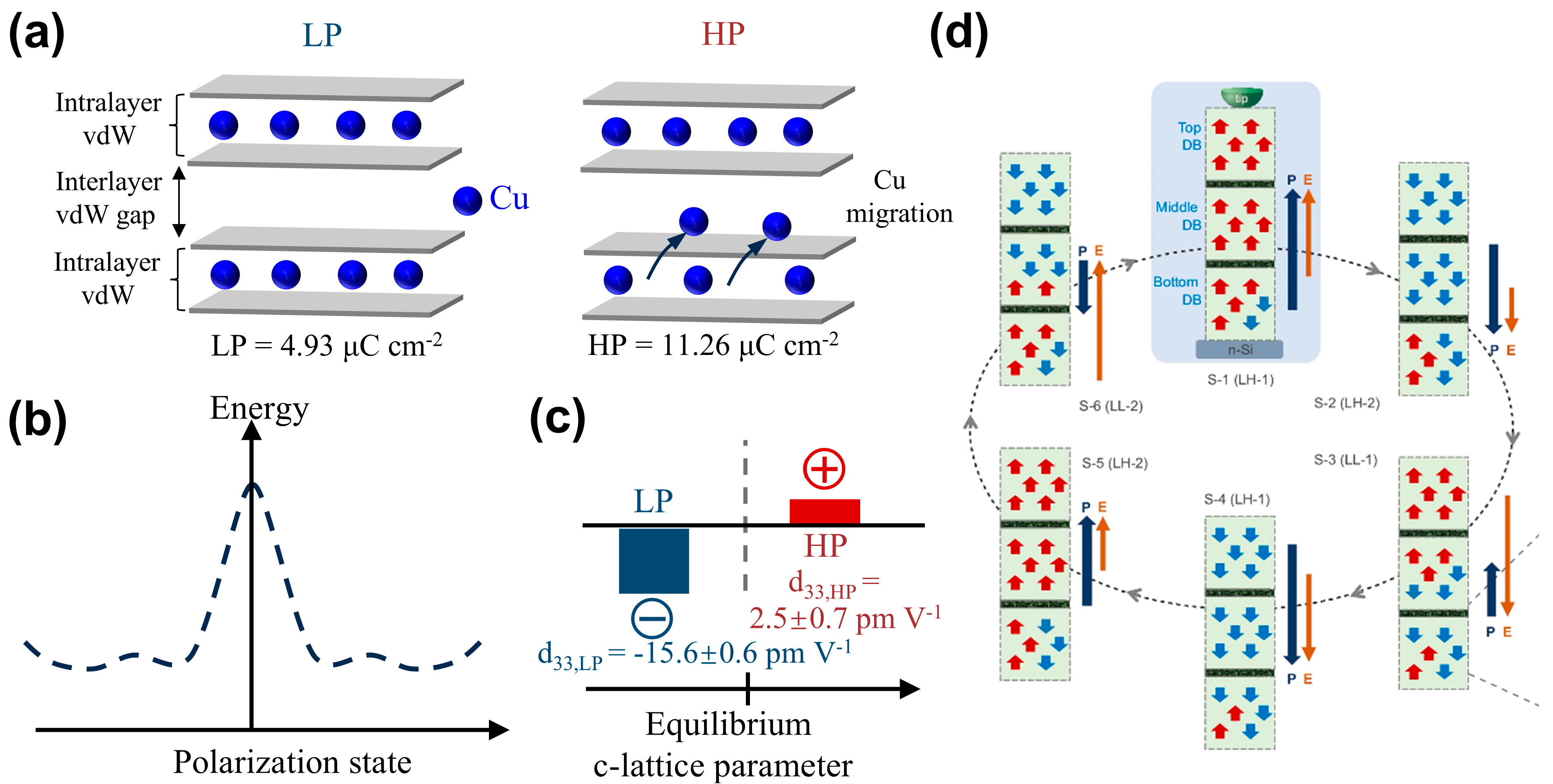 - Zhang, X.; Xiao, C.; Zhang, Z.; Dong, L.; Pan, H.; Cao, C.; Yang, S.A.; Wei, S.-h.; Lu, Y. Origin of versatile polarization state in CuInP2S6. Phys. Rev. B 2023, 108, L161406. [Google Scholar] [CrossRef]