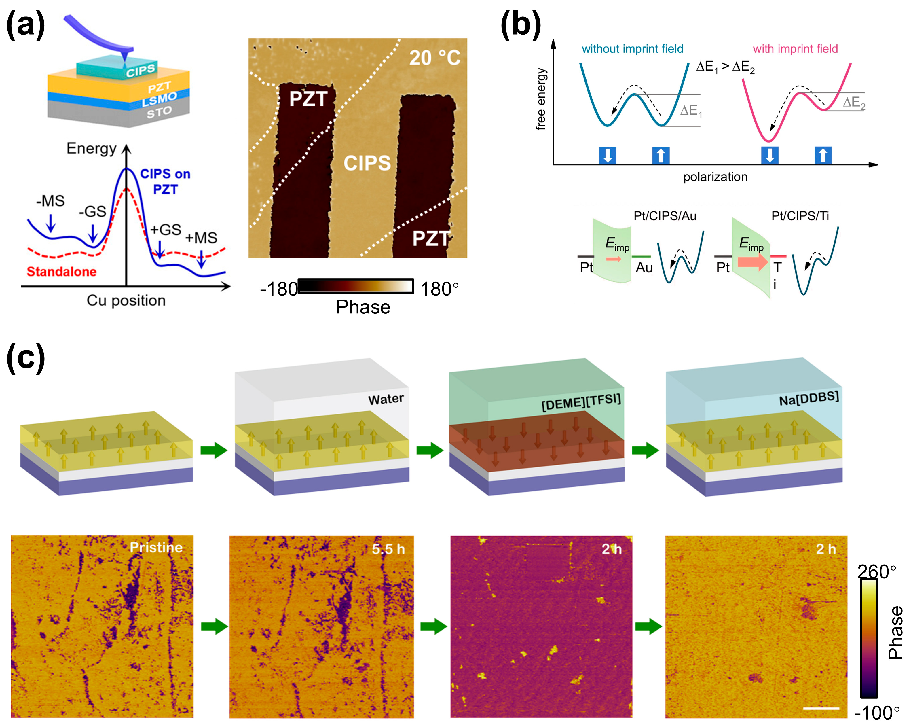 | graphite/CIPS/graphite | Photovoltaic device | Liang et al. [50] | Strong ferroelectric-ionic coupling |