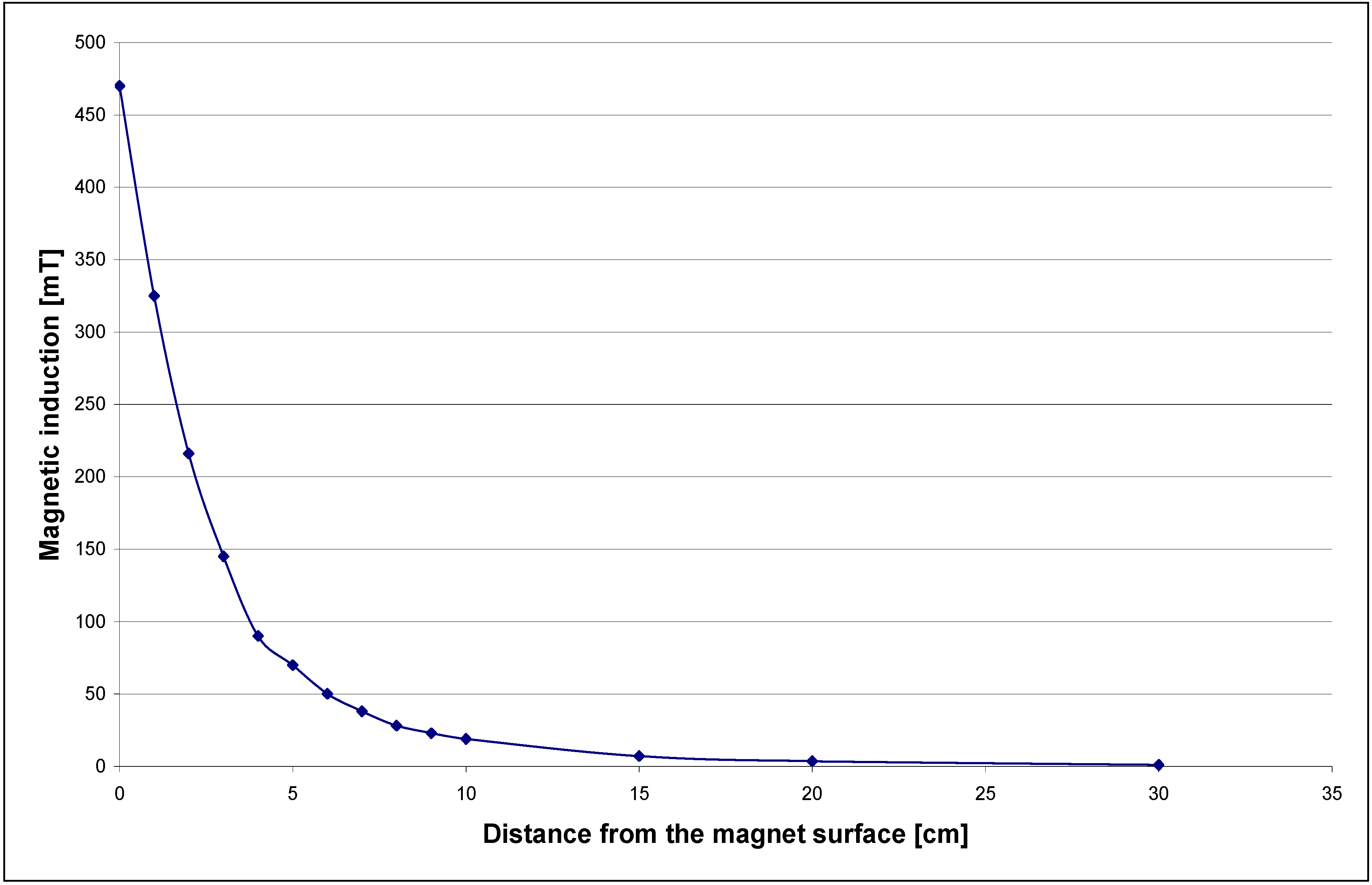 Characteristics of the neodymium magnet used for MEP system.