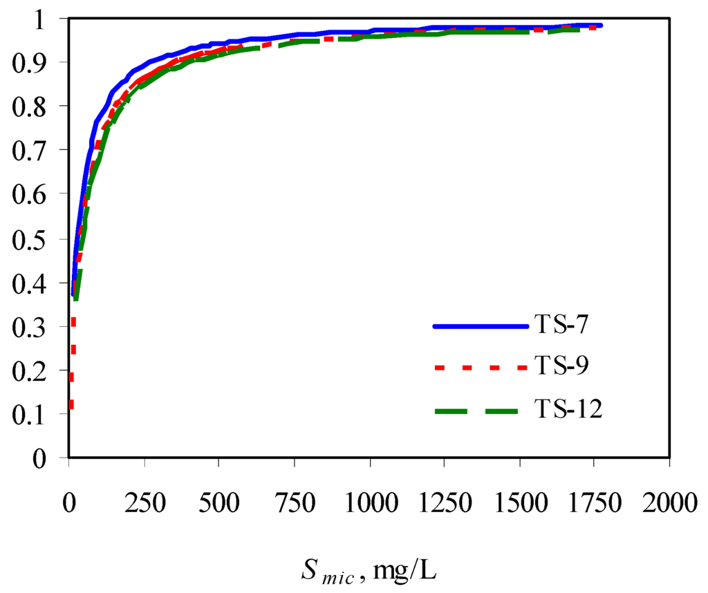 The authors observed that the presence of surfactants enhanced the biodegradation of phenanthrene due to its increased solubility, compared with its biodegradation in the absence of surfactant. However, at a fixed initial phenanthrene concentration, with increase in surfactant concentration, its biodegradability was compromised, indicating the inhibitory effects of surfactant at higher concentrations. This could be due to the low availability of phenanthrene partitioned into the micellar phase. With increase in surfactant concentration, the solulization extent α increases sharply and then approach 1. This means at a high surfactant concentration, the substrate is mainly in the micellar phase. When the concentration of the micellized surfactant is above 300 mg/L, more than 90% of the total substrate is in the micelles (Figure 3) [73].