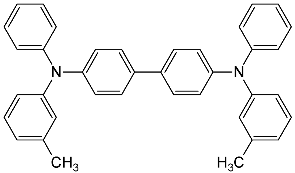Chemical structure of N,N’-bis(3-methylphenyl)-N,N’-dyphenylbenzidine (TPD).