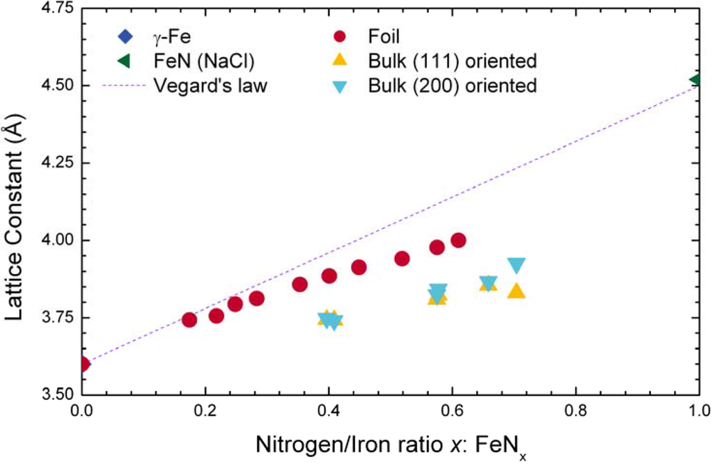 - Williamson, D.L.; Öztürk, O.; Wei, R.; Wilbur, J.P. Metastable phase formation and enhanced diffusion in f.c.c. alloys under high dose, high flux nitrogen implantation at high and low ion energies. Surf. Coat. Technol. 1994, 65, 15–23. [Google Scholar] [CrossRef]
