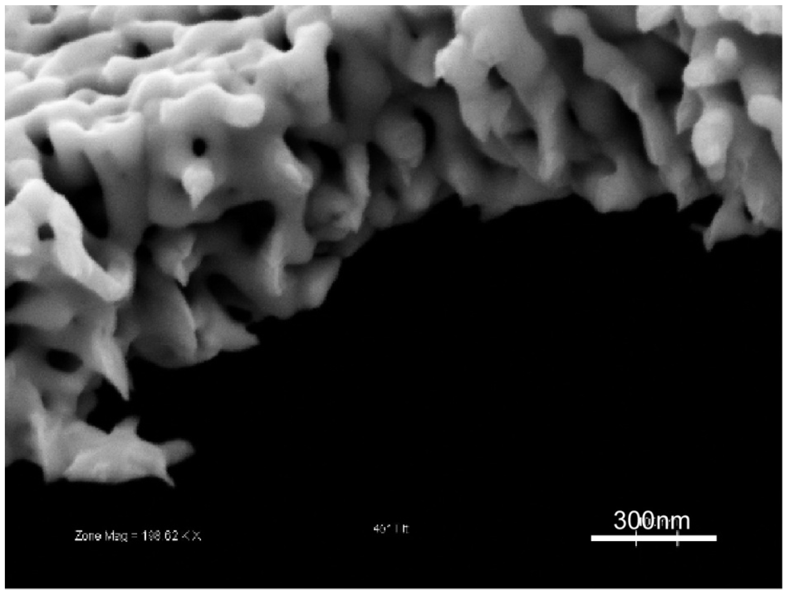 - Li, Z.; Zhuo, S.; Li, H.; Si, W.; Ding, Y. Determination of ligament size distribution of nanoporous gold by scanning electron microscopy and image analysis. J. Nanosci. Nanotechnol. 2009, 9, 1651. [Google Scholar] [CrossRef] [PubMed]
