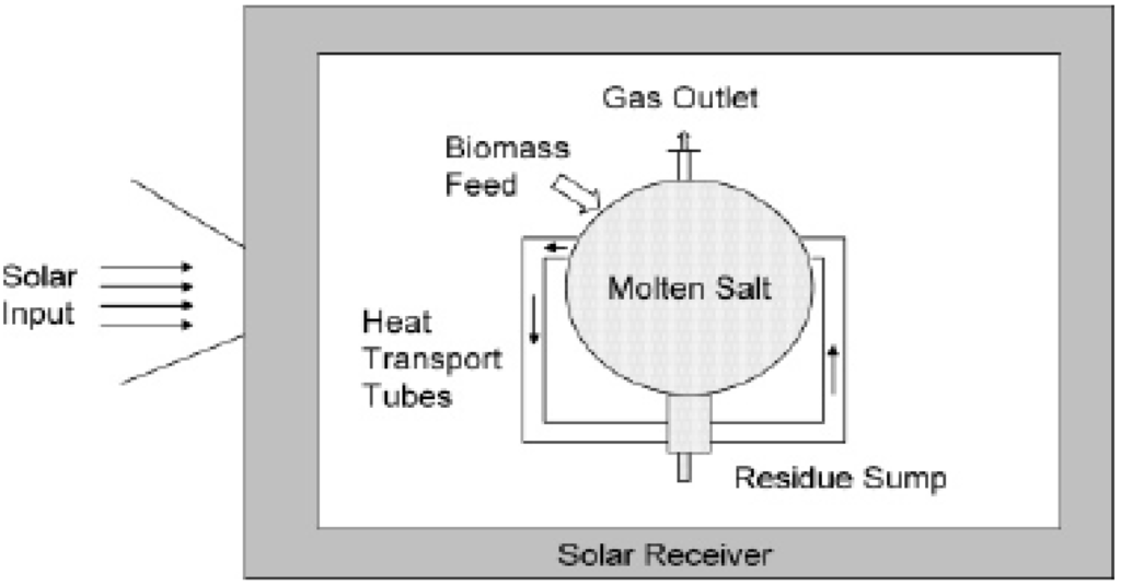 179. Adinberg, R.; Epstein, M.; Karni, J. Solar gasification of biomass: A molten salt pyrolysis study. J. Solar Energy Eng. 2004, 126, 850–857. [Google Scholar] [CrossRef]