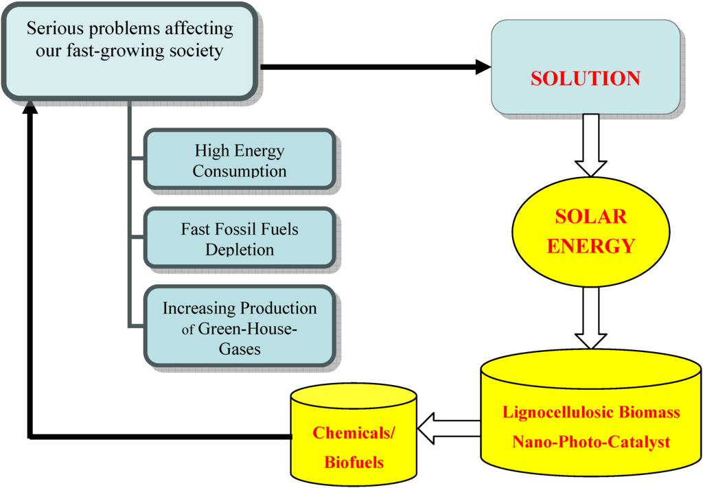 Scheme 1. The efficient use of solar energy and biomass is considered a potential solution for energy and environmental challenges.