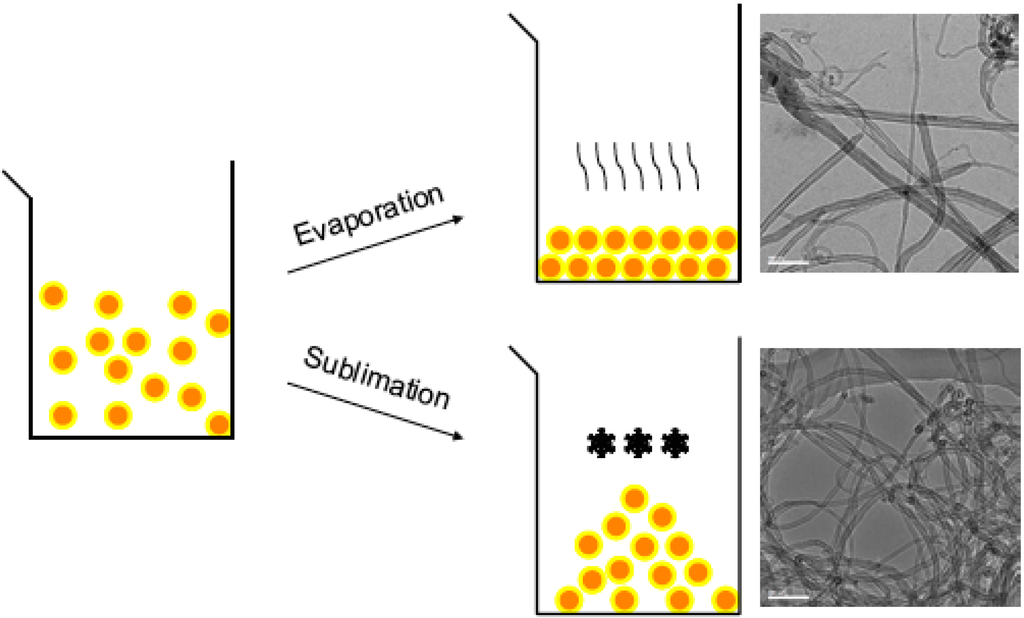 - Moisala, A.; Nasibulin, A.G.; Kauppinen, E.I. The role of metal nanoparticles in the catalytic production of single-walled carbon nanotubes - a review. J. Phys.: Condens. Matter 2003, 14, S3011–S3035. [Google Scholar] [CrossRef]