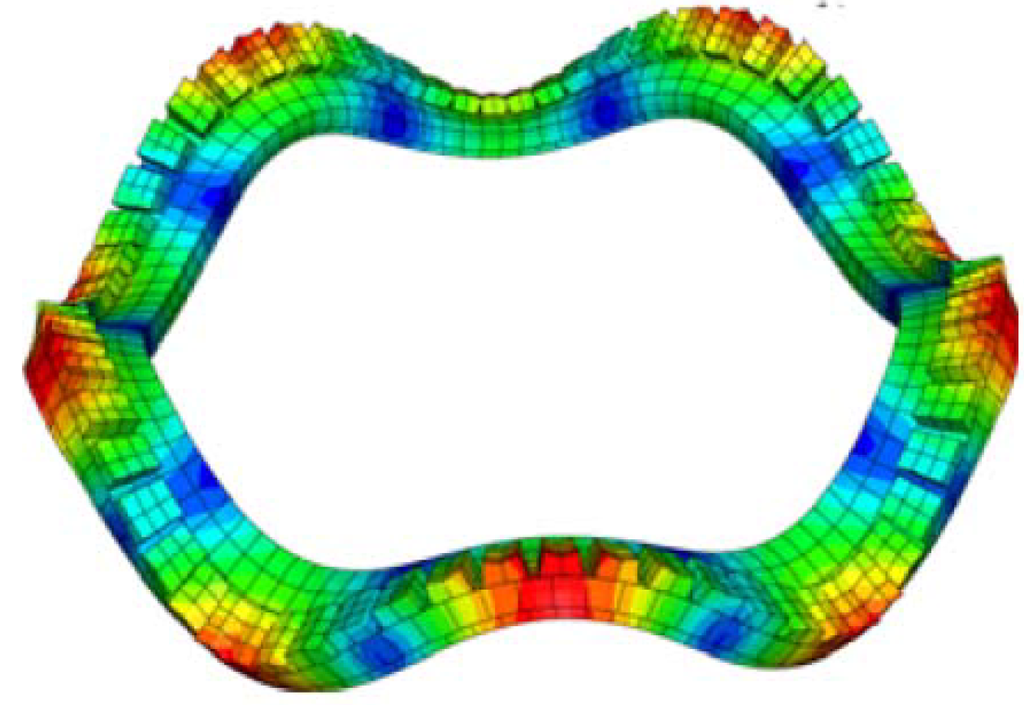 Figure 1. Snapshot on the transient response of a piezoelectric coupled ring with wave propagating (adopted from Figure 13d in [44]).
