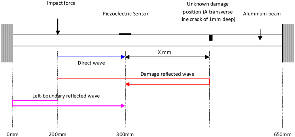 Comprehensive methodologies [5,9,18,20,22,,23,26] for locating and determining the extent of linear crack in beams, plates and pipes have been developed based on the time-of-flight analysis of Lamb wave propagation via appropriate data analysis methods such as wavelet transform initiated by Wang et al. [115,116,117] and Hilbert-Huang transform (HHT) [118,119,120]. These methodologies and applications are reviewed hereinafter.