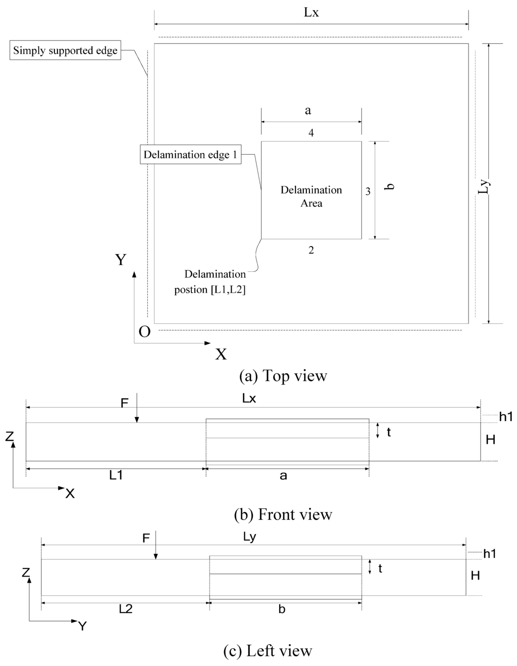 Figure 14. A delaminated plate structure (adopted from Figure 1 in [58]).