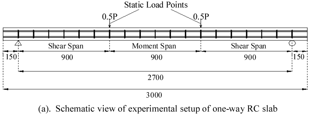 Koh [121] experimentally studied the properties of a simply-supported one-way RC slab with a cross section of 500 mm by 15 mm and a span of 2,700 mm. The RC slab undergoes various degrees of damage when subjected to increasing magnitude of third point loads, namely, at zero, first crack, 30 kN and yield loads. An impact hammer is used to induce vibration in the slab at each stage and the response is recorded using the piezo-accelerometers attached to the top surface of the slab and the strain gauges under the tensile reinforcement bars at the mid-span section (Figure 6). The signals are processed using HHT. The data from the accelerometers and the strain gauges show similar features. The results show that the frequency decreases as the degree of damage increases with a total reduction of 23% in the fundamental frequency from the healthy stage to the yield stage, which is significant. It is also observed that the major reduction in the frequency occurs between the first crack and 37.5% of the yield load where the tensile cracks tend to propagate rapidly in the thickness direction of the slab, causing significant reduction in stiffness.
