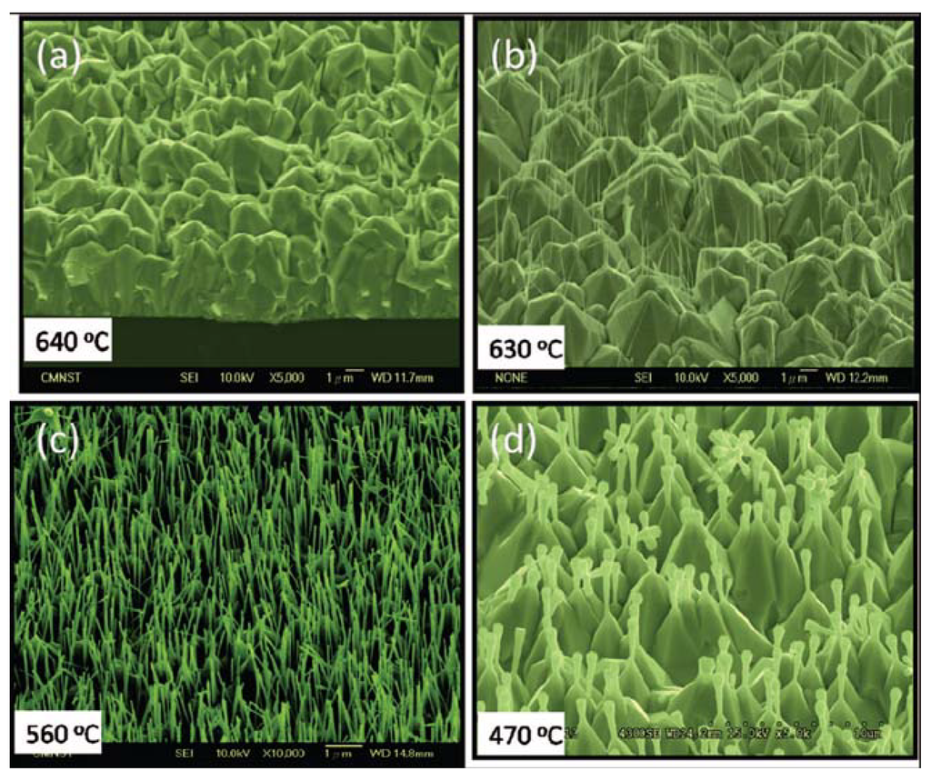 - Lee, W.; Jeong, M.C.; Myoung, J.M. Fabrication and application potential of ZnO nanowires grown on GaAs(002) substrates by metal–organic chemical vapour deposition. Nanotechnology 2004, 15, 254. [Google Scholar] [CrossRef]