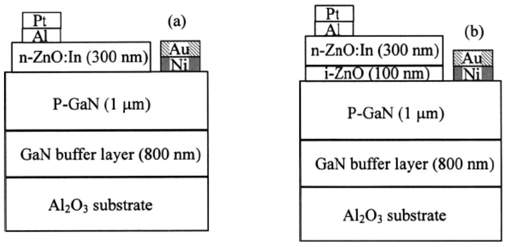 - Ye, Z.Z.; Lu, J.G.; Zhang, Y.Z.; Zeng, Y.J.; Chen, L.L.; Zhuge, F.; Yuan, G.D.; He, H.P.; Zhu, L.P.; Huang, J.Y.; Zhao, B. H. ZnO light-emitting diodes fabricated on Si substrates with homobuffer layers. Appl. Phys. Lett. 2007, 91, 113503. [Google Scholar] [CrossRef]