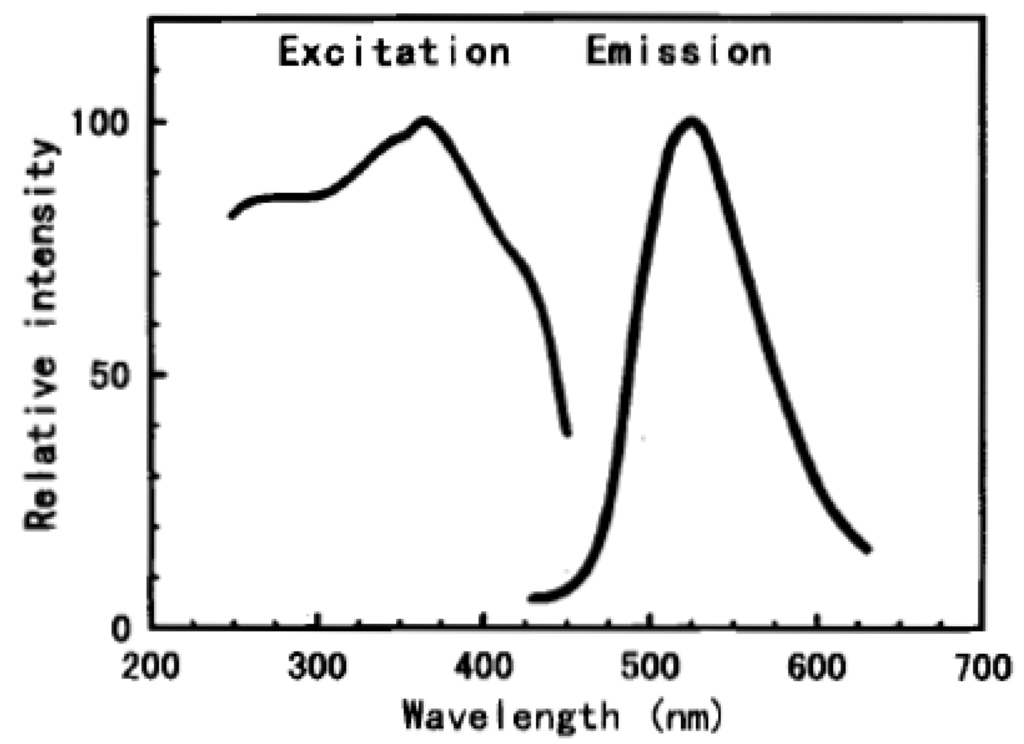 | SrB2O4 | Eu2+ | 430 (blue) | idem | unknown | [91] |