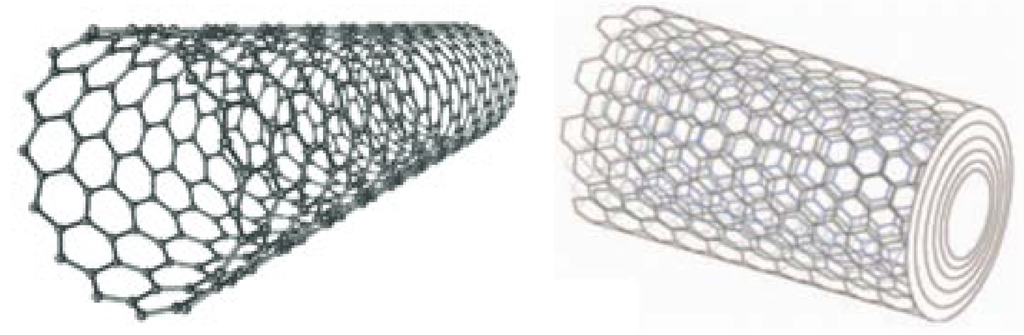 Illustration of SWCNTs (left) and MWCNTs (right).