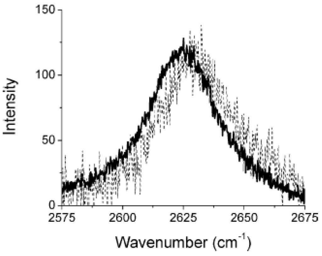 The Raman spectra of D*-mode in PP-1 wt % SWCNTs composite with no strain (dashed line) and with 2% strain (solid line). Reproduced with permission from ref. [27].